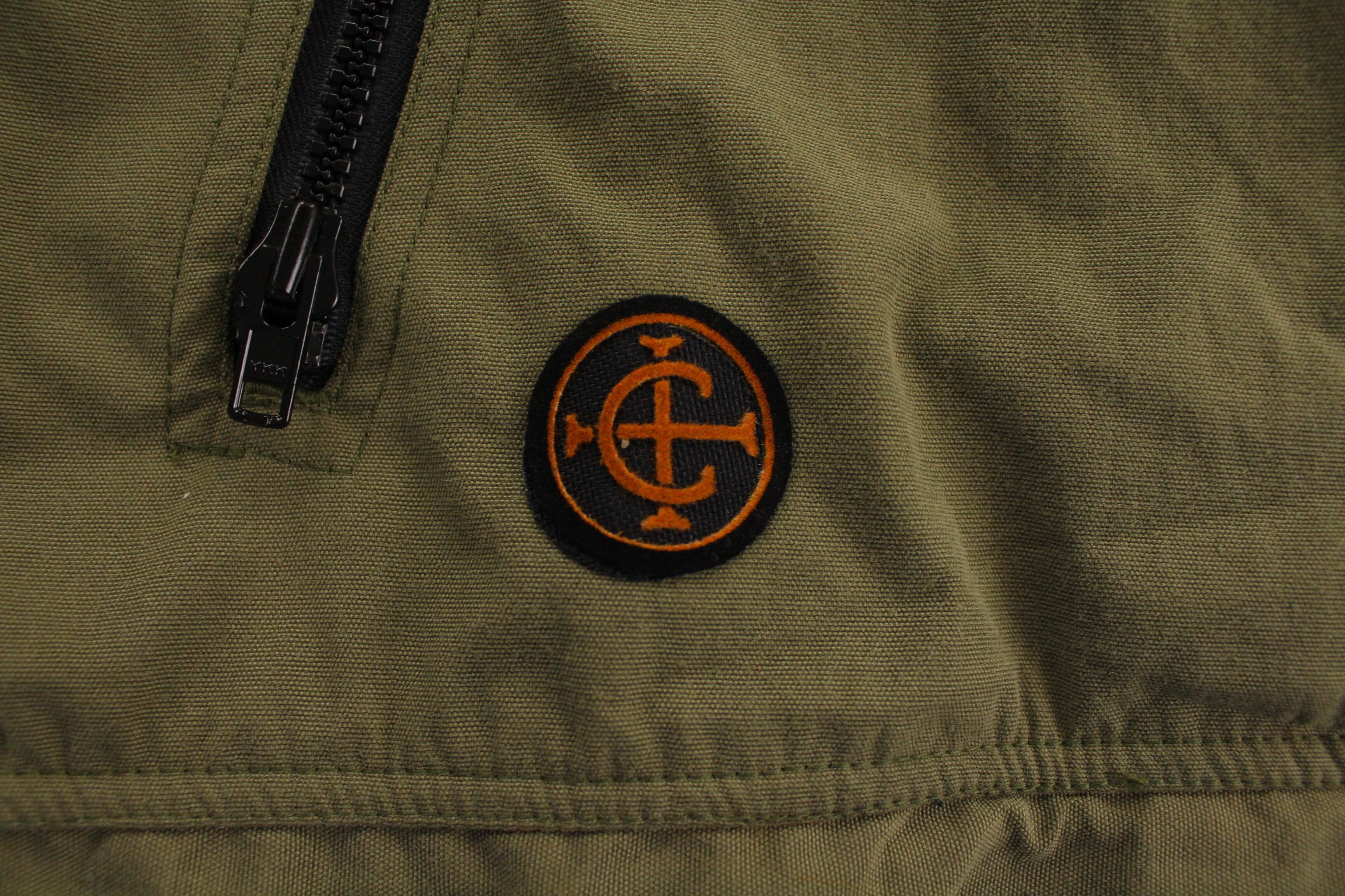 フロントハーフジップに大きめなフラップポケット、更には両サイドジップポケット、フードにはドローコード、袖口はマジックテープで調節可能、裾にもドローコード付きますのでギュッと絞ってシルエットの変化も楽しめます。