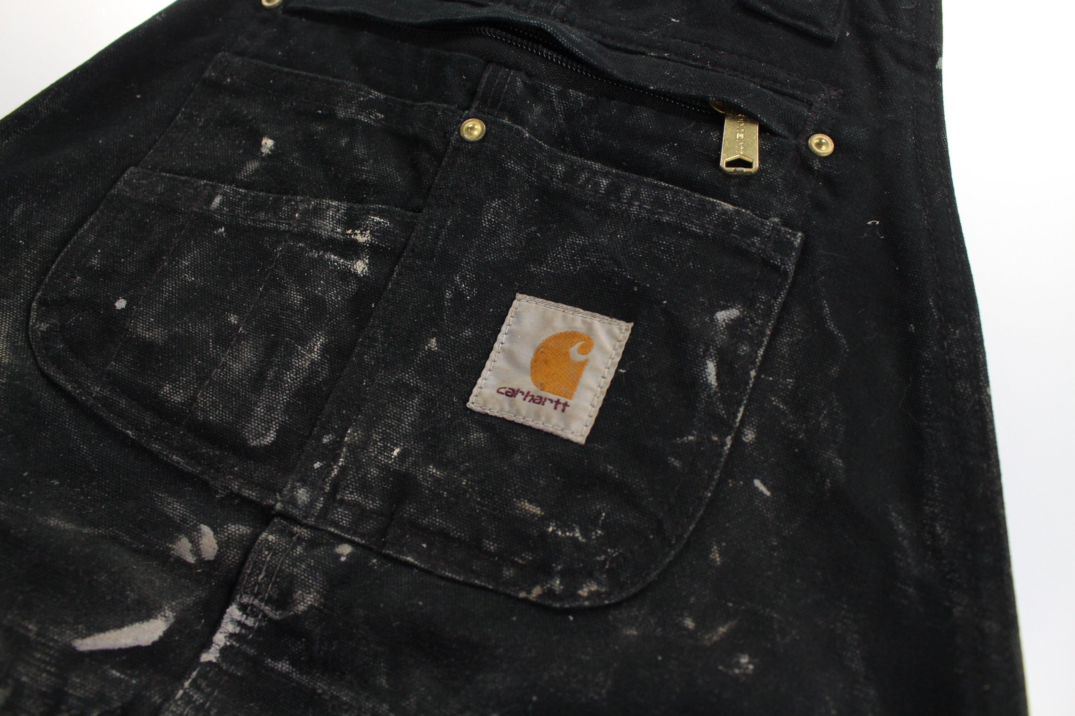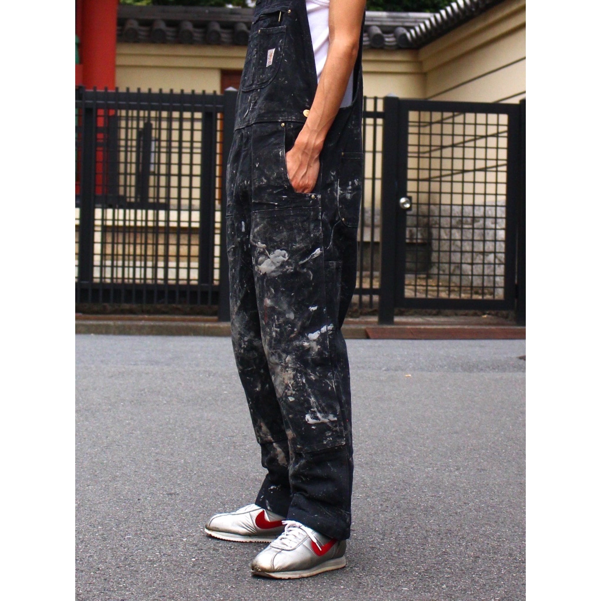 【CUBA】1990s Carhartt painted black double knee duck overall -7968-