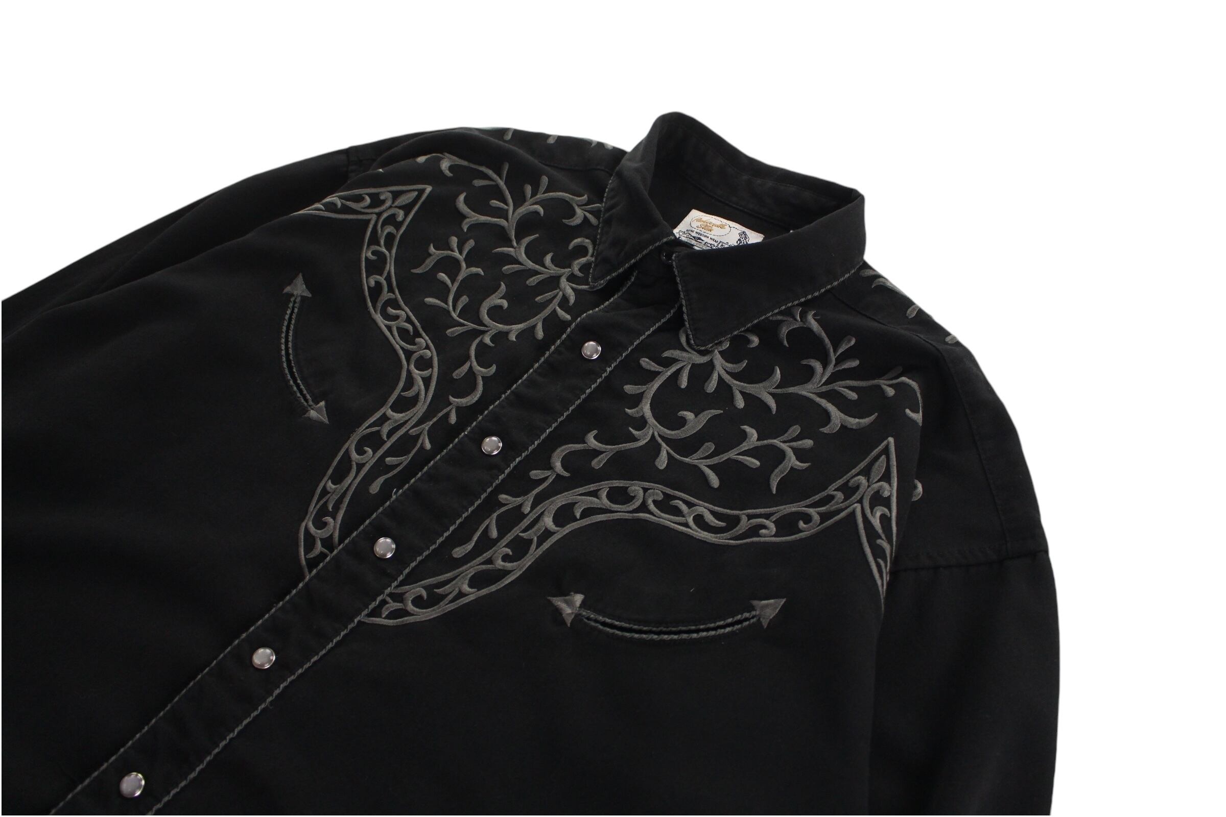 【COU】1970~80's vintage western shirt black×glay embroidery -4851-