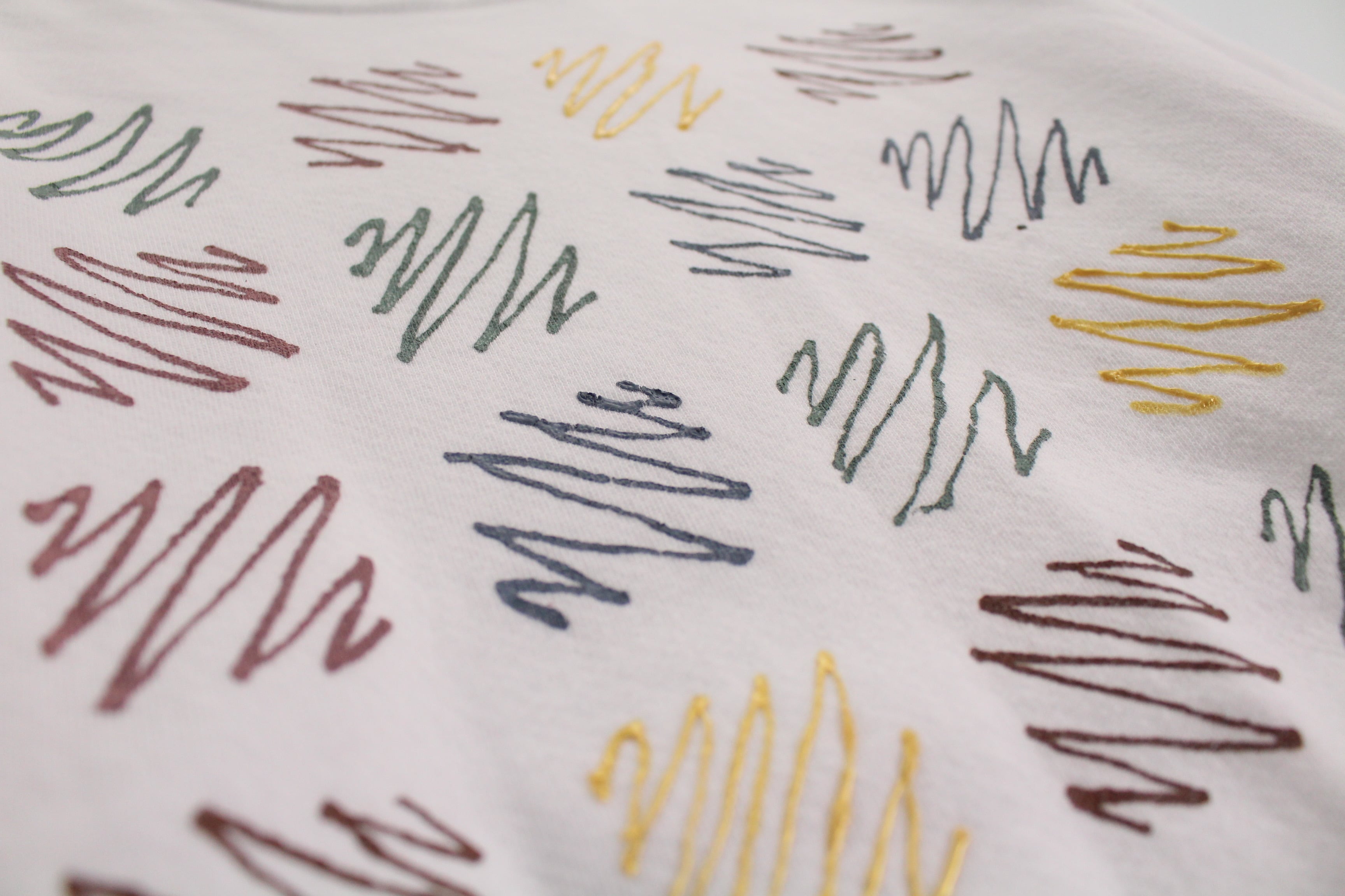 ホワイトベースに芸術的やペンキのようなデザインが施されておりかなり愛くるしい一着。