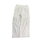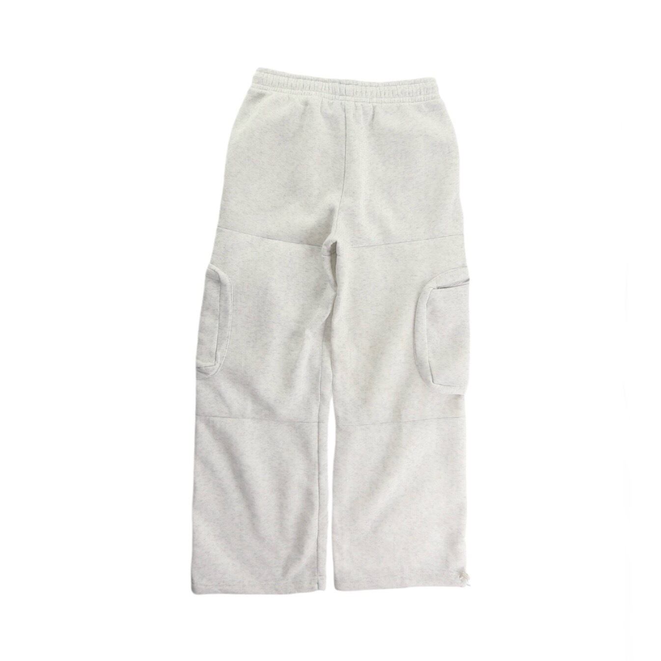 グレーとホワイトの霜降りのようなゆったりした色合いに、両サイドに立体的なポケット、裾にはドローコード付き。