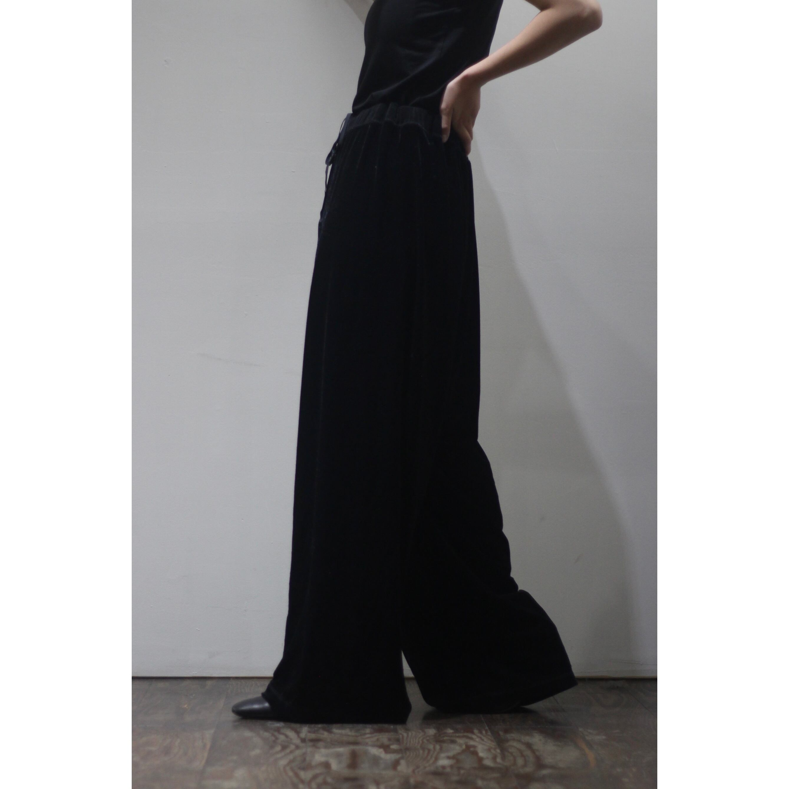 【COU】velour fabric hakama wide easy pants with drawcord-4870-