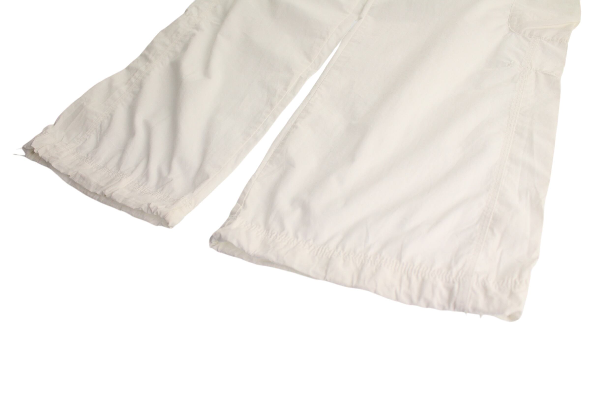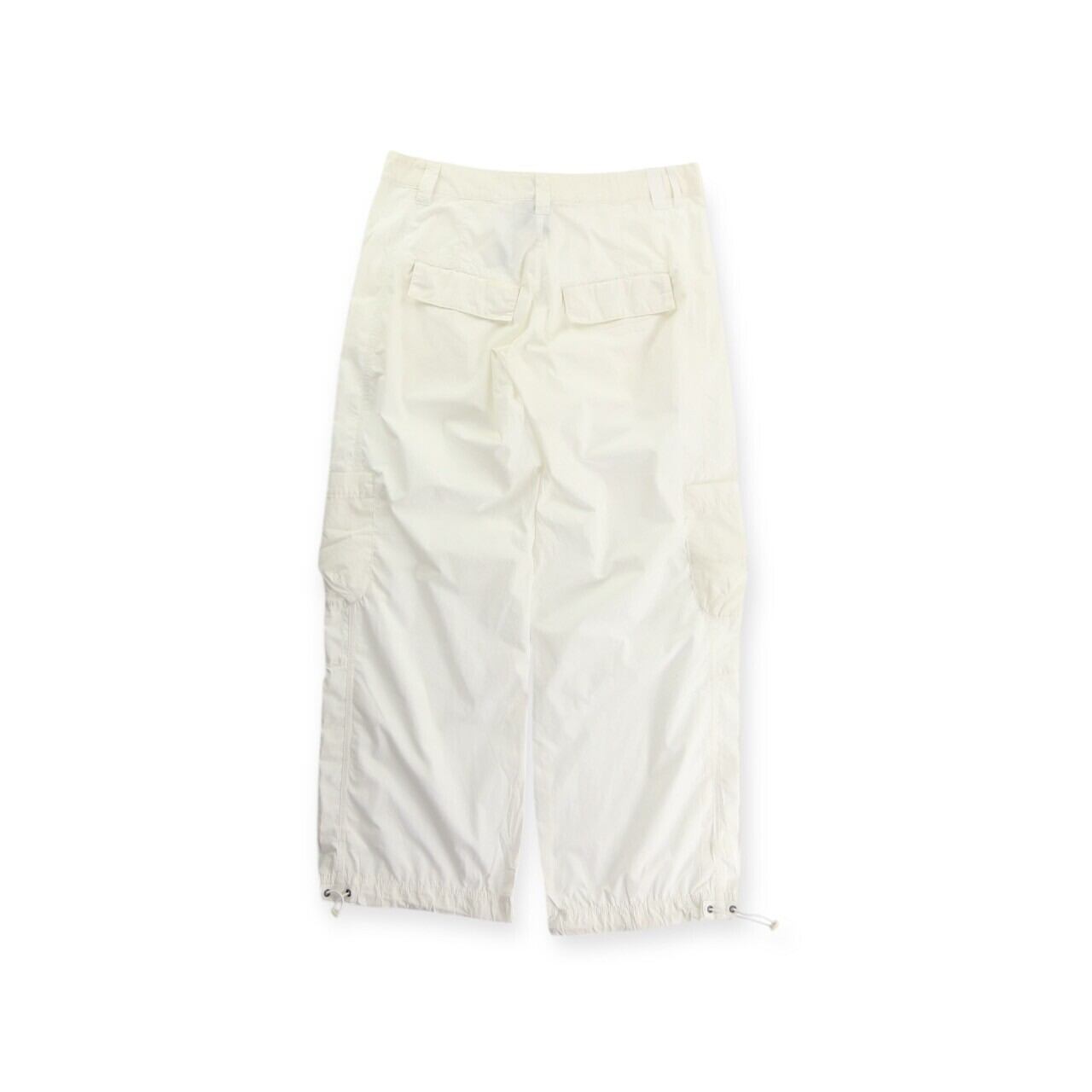 まるでスノーカモパンツを彷彿とさせるような雪のような白さに、コットンポリエステル生地でナイロンのシャカシャカよりもスムースに近いような生地感。