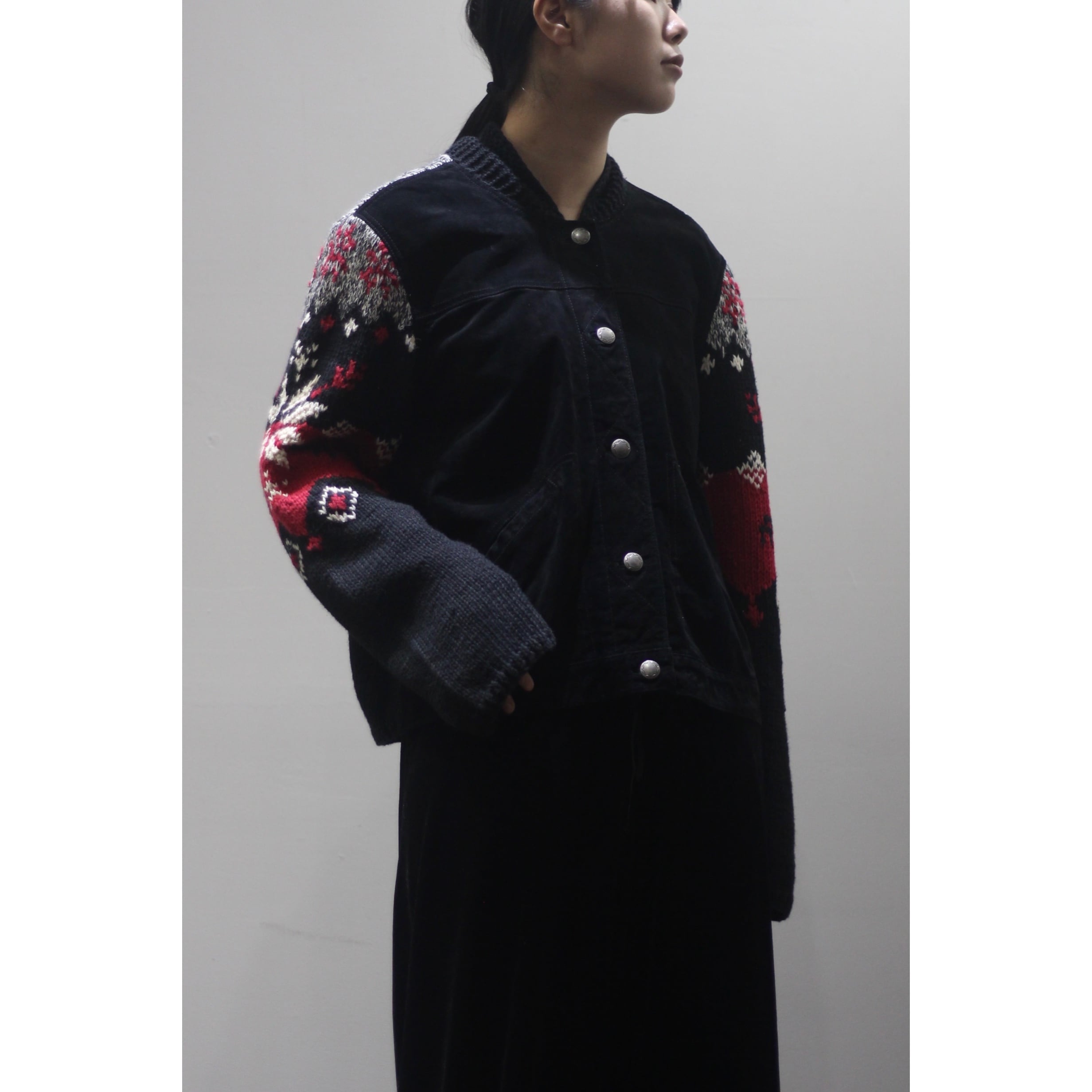 【COU】1990's vintage suede combo nordic knit jacket -4877-