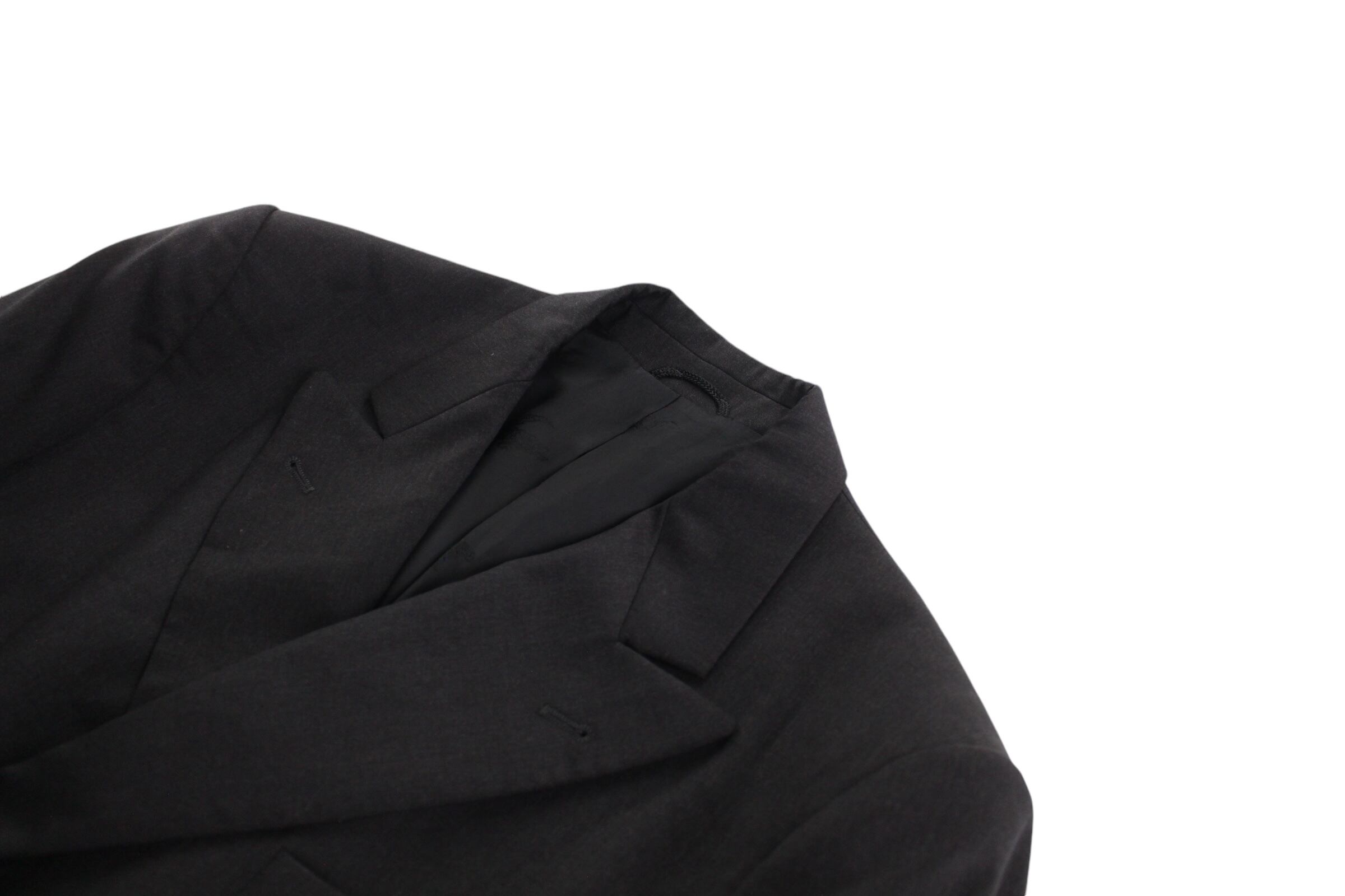 上品なピークドラペルにラグジュアリーブランドらしい素晴らしいテーラーリング技術がマッチしていてシックなチャーコールカラーリングが最高な一着。
