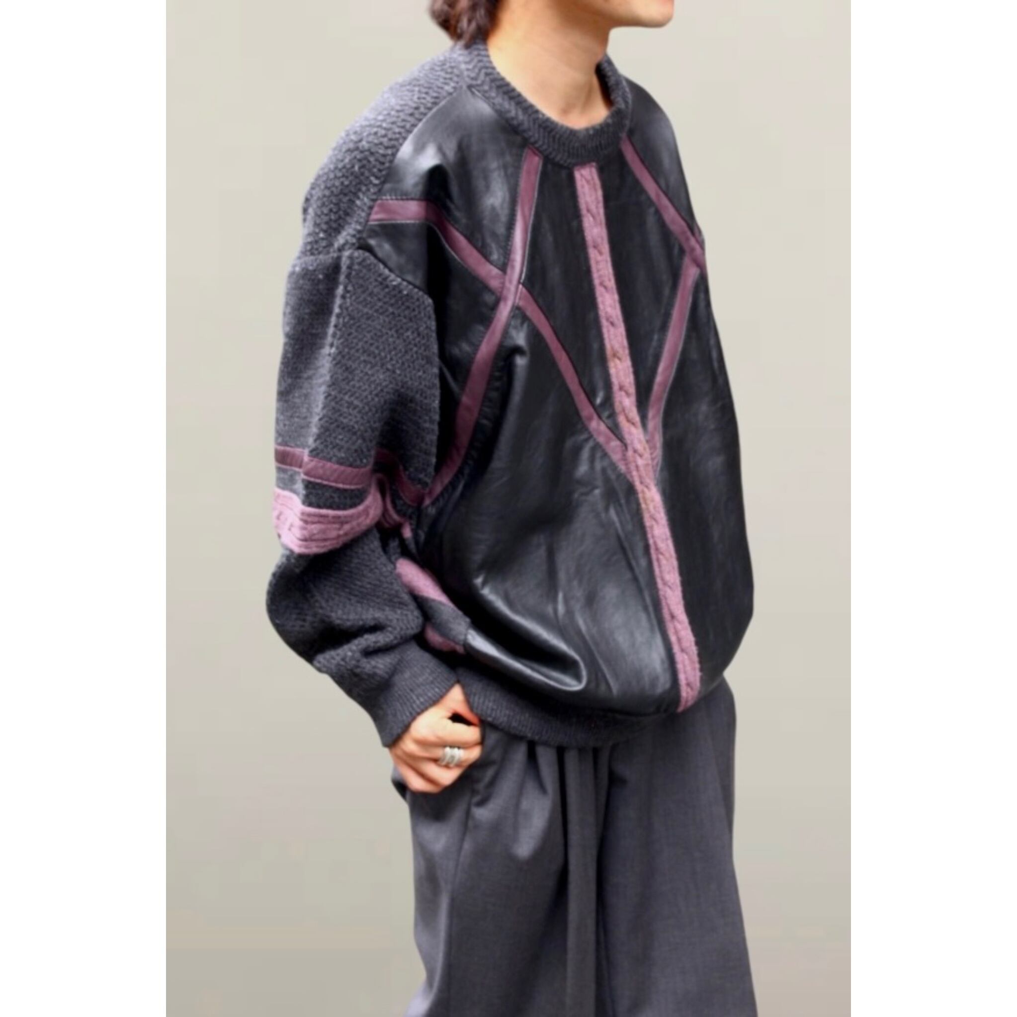 非常にクオリティの高いデザインが効いたレザー切替ニット◎