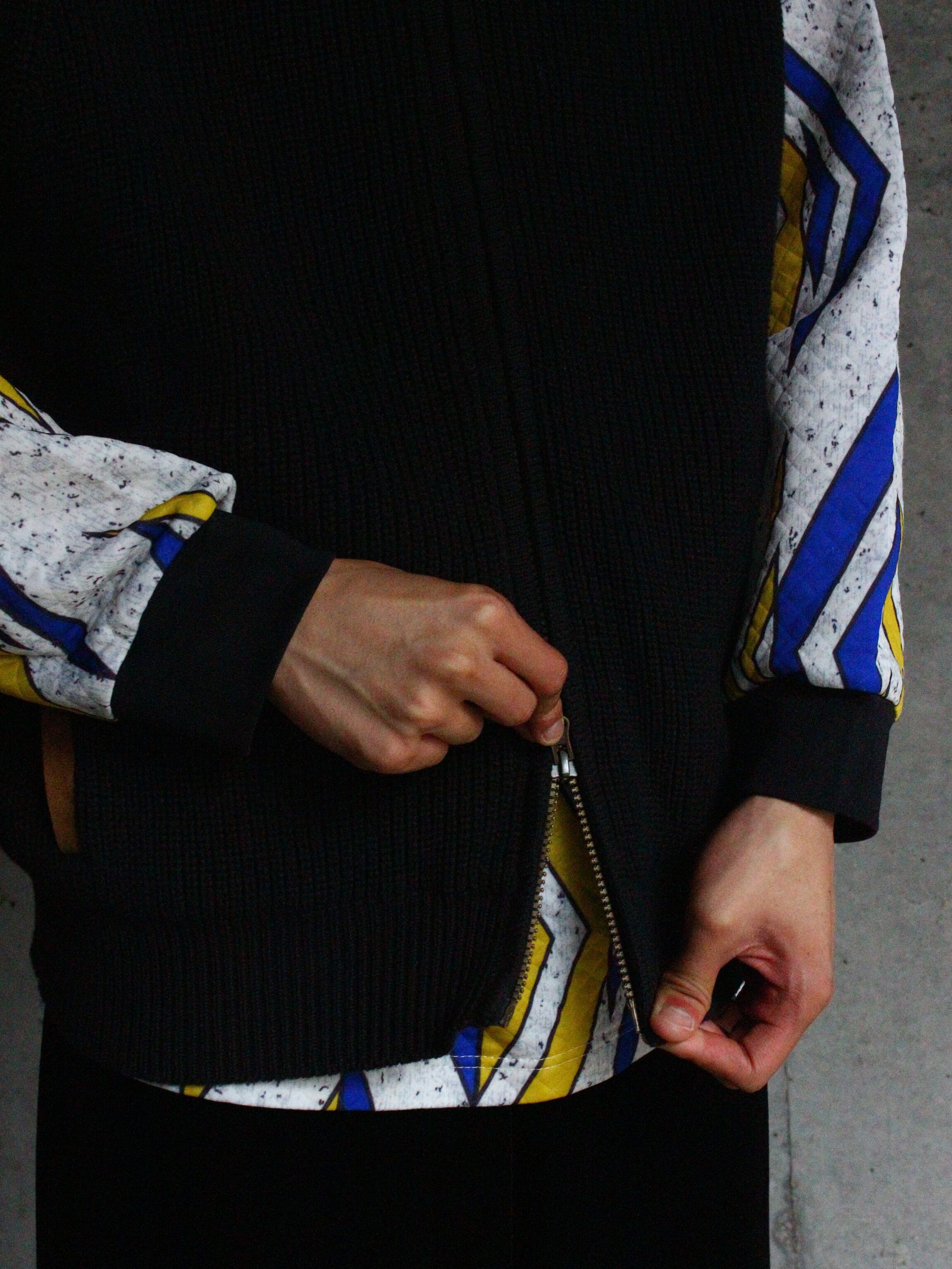 程よいローゲージ仕様のコットンニットベストになっていてドライバーズなのでジップを調節してレイヤードなど様々な着方ができるベスト。