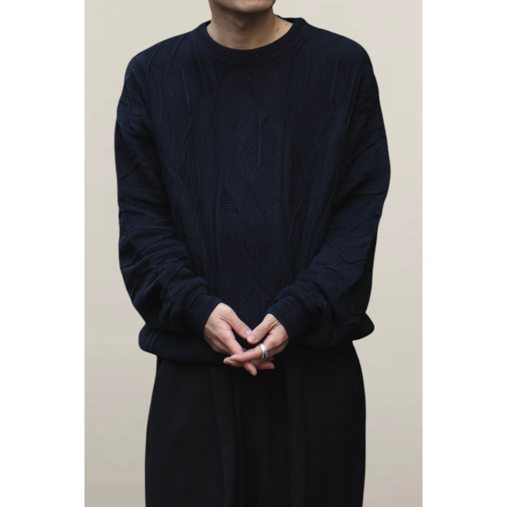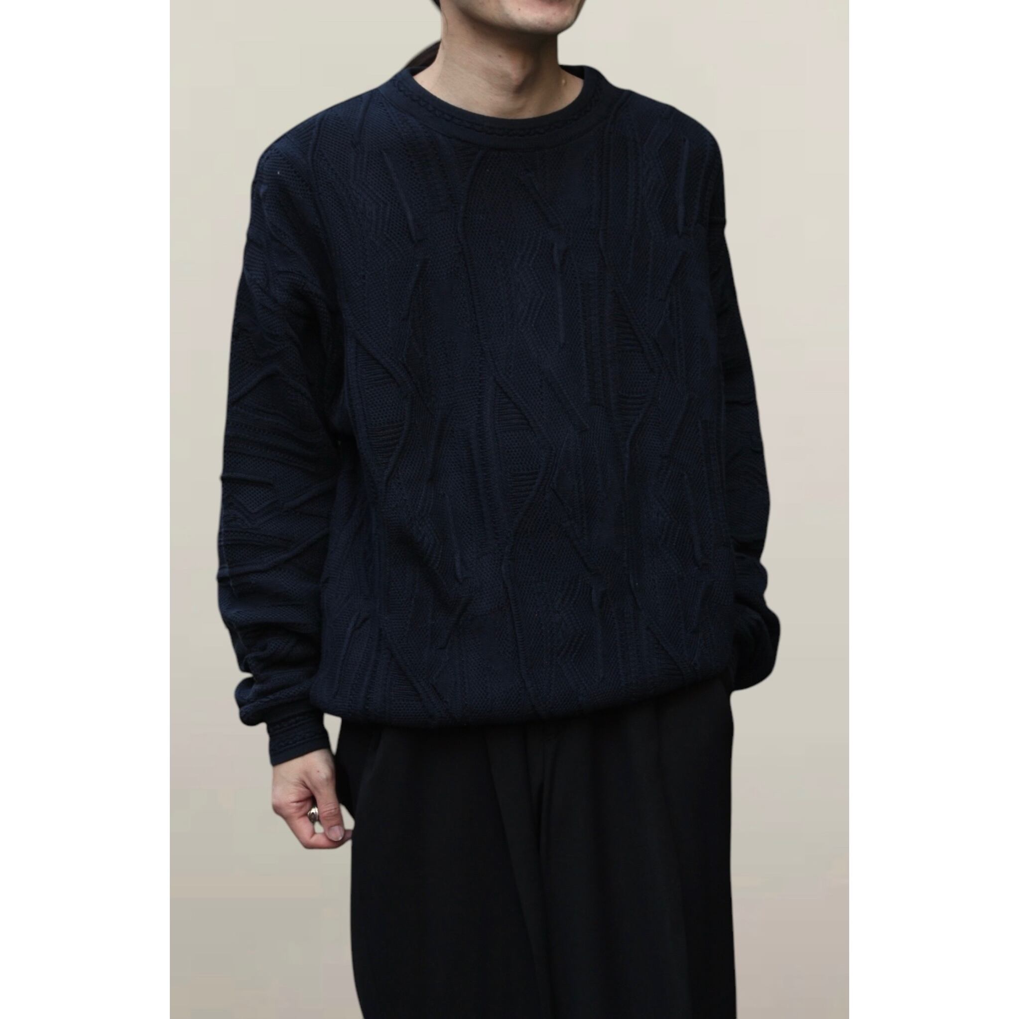 【OTSU】1990's "TUNDRA" one-tone 3D knit sweater -11337-