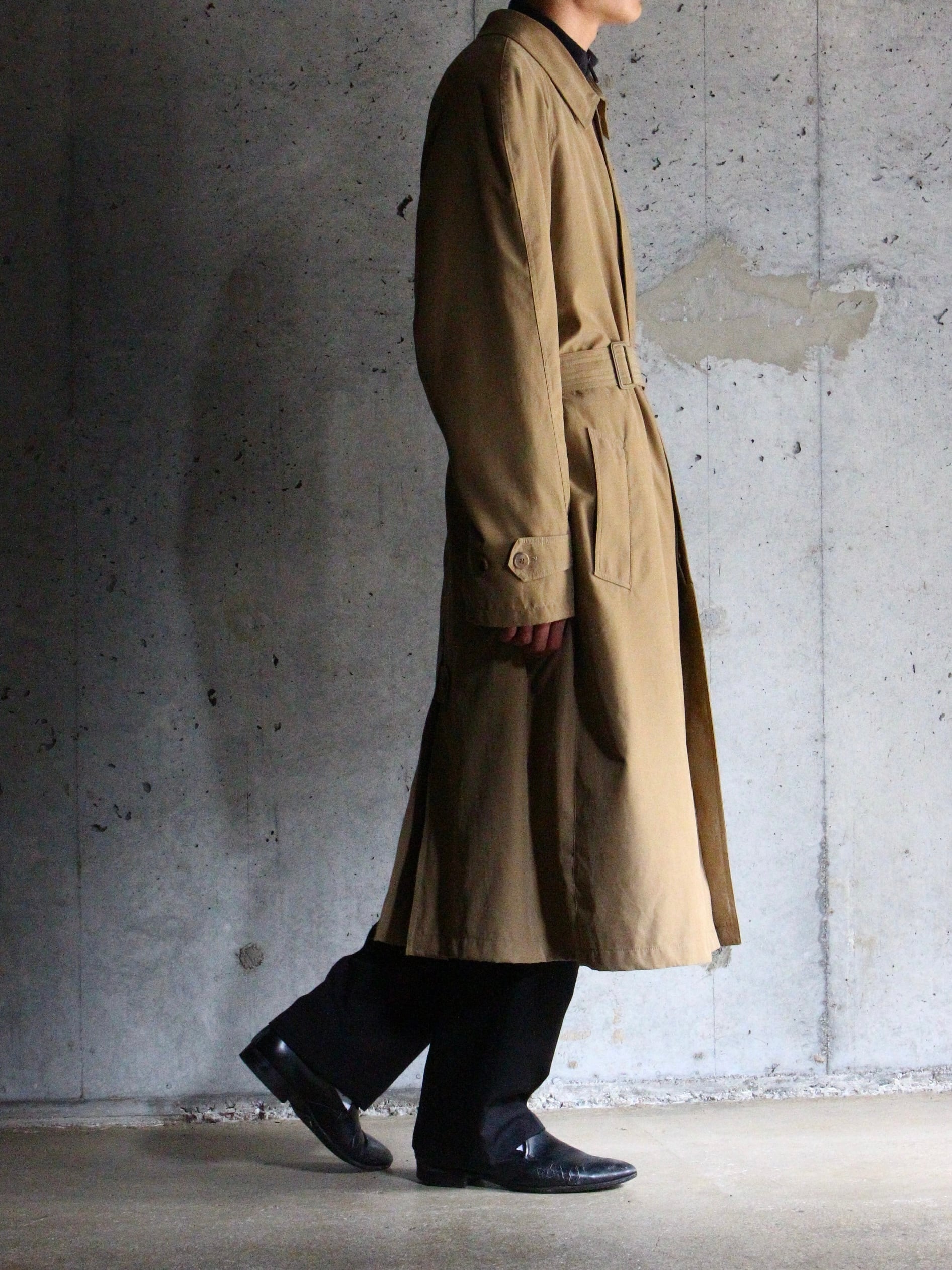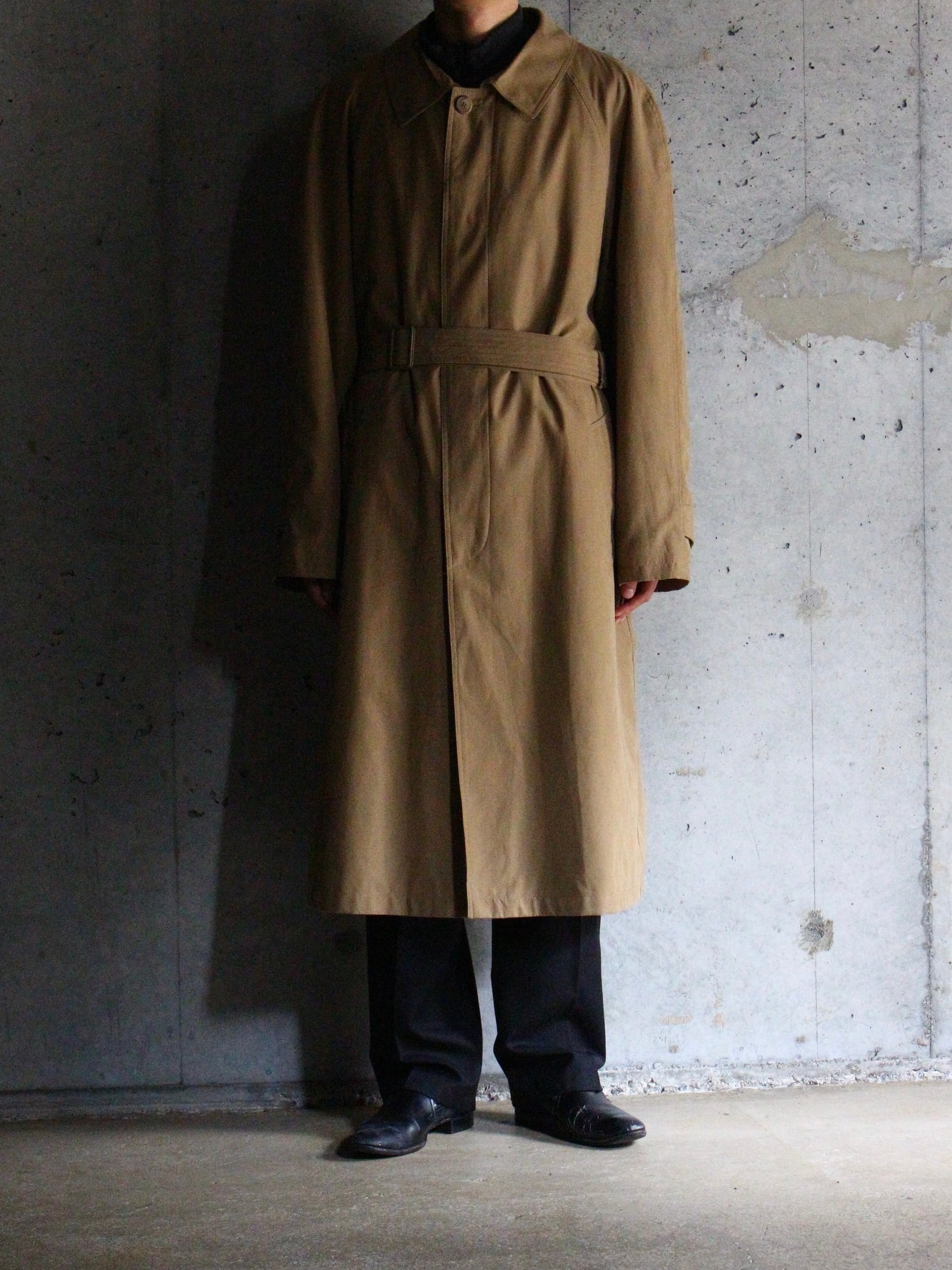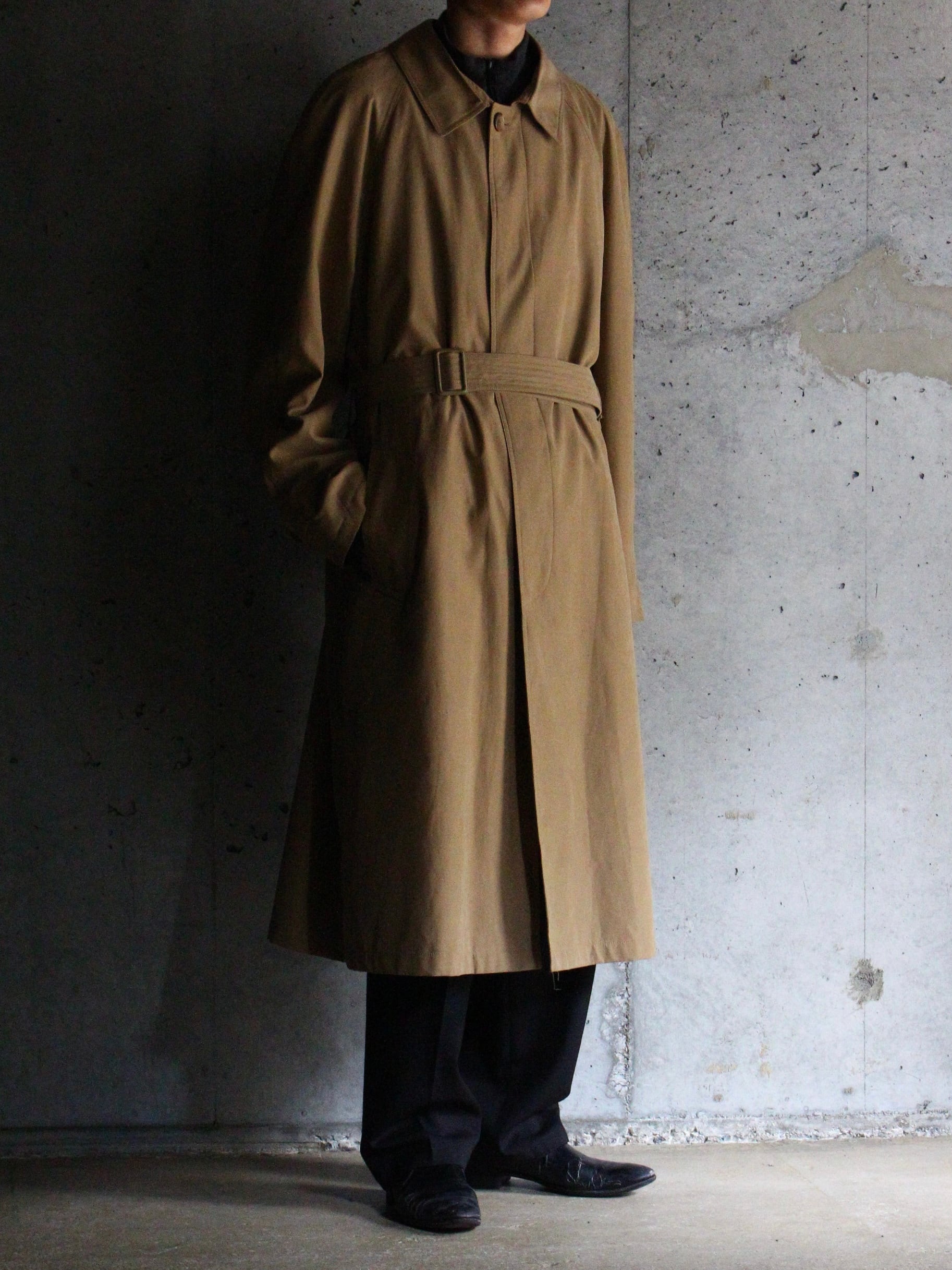 ステンカラーコートらしい良きディテールは残しつつもモダンなオーバーシルエットにベルテッド◎
