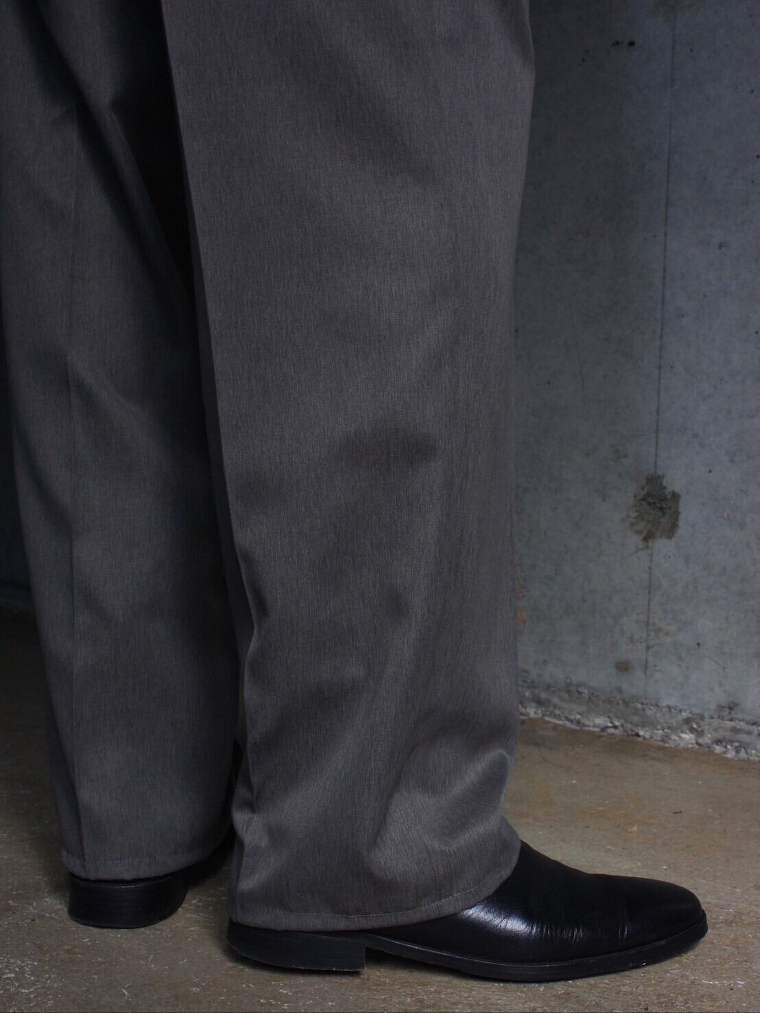 マイクロポリエステルファブリックでお洗濯も行けますし通常のポリエステルよりも光沢感にサラッと着れる生地感なのでオールシーズンもってこいのスラックス。