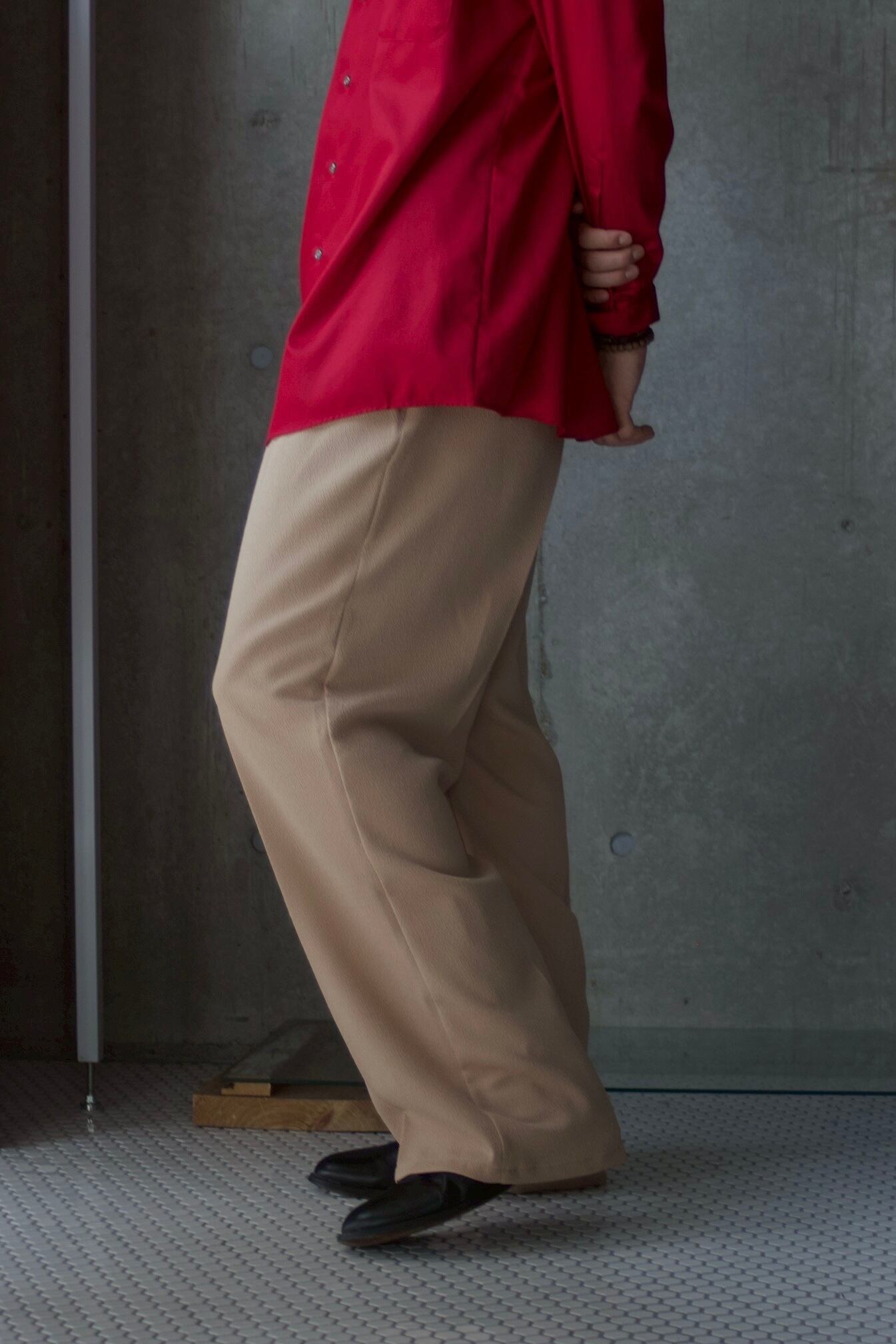 ポリエステルファブリックで柔らかくトロミのある素材感。動くと出る揺れ感もとても綺麗。