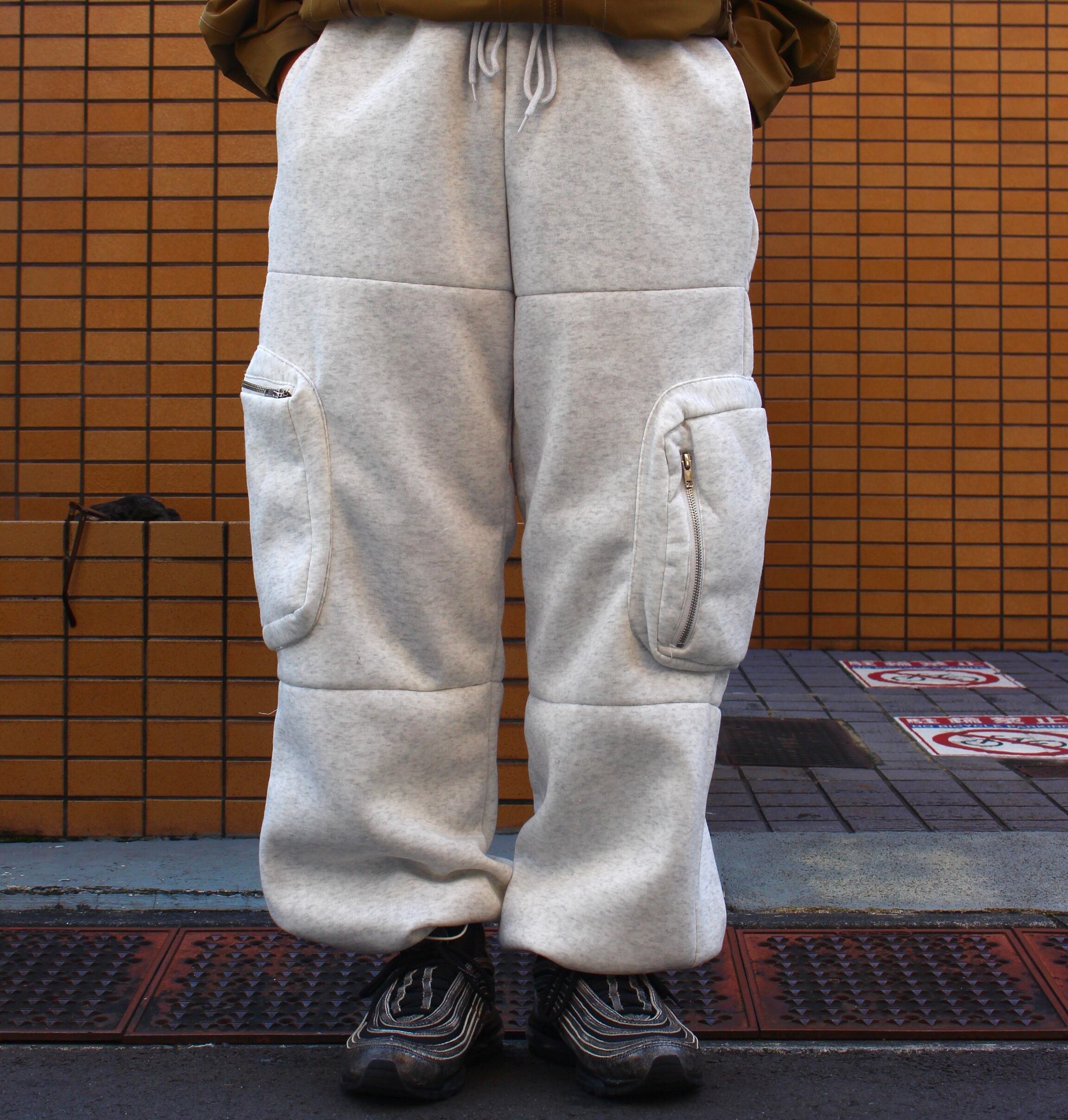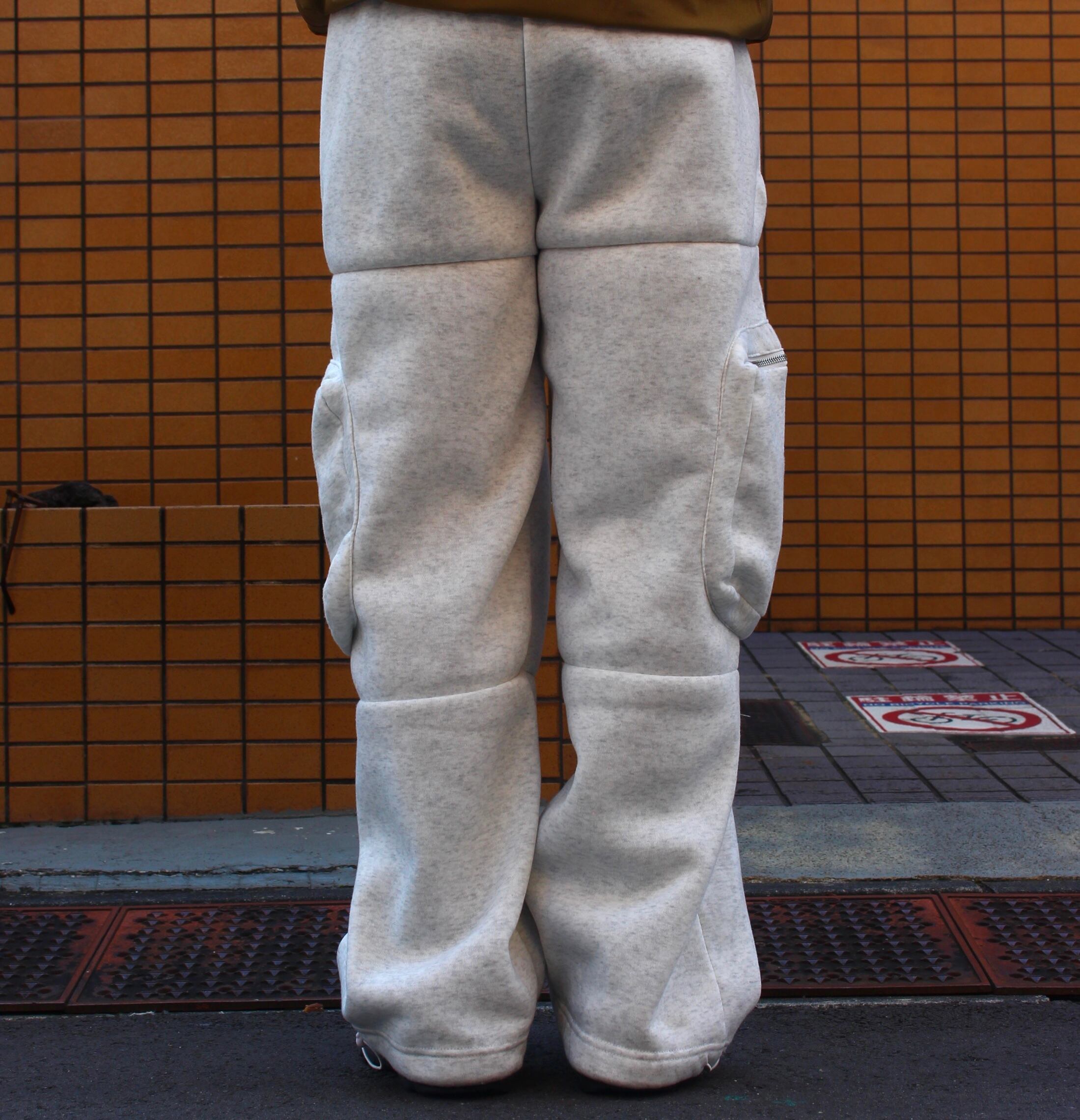 【CUBA】"TECK design" oatmeal color wide silhouette sweat pants with drawcord-8041-