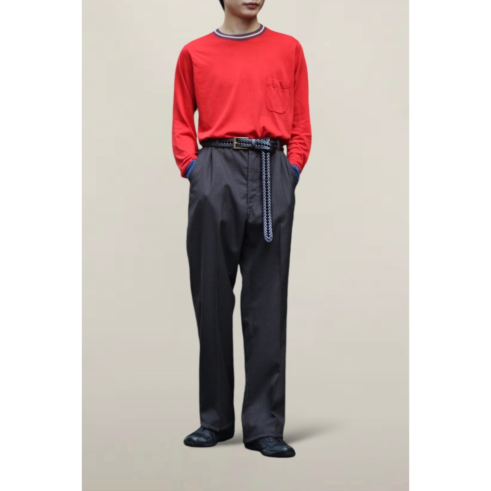 クラシックな風合いでチャコールにホワイトの配色バランスが綺麗ですね。インナーにはシャツはもちろん、カットソーやニット等色物も合わせてスタイリングを組める逸品。