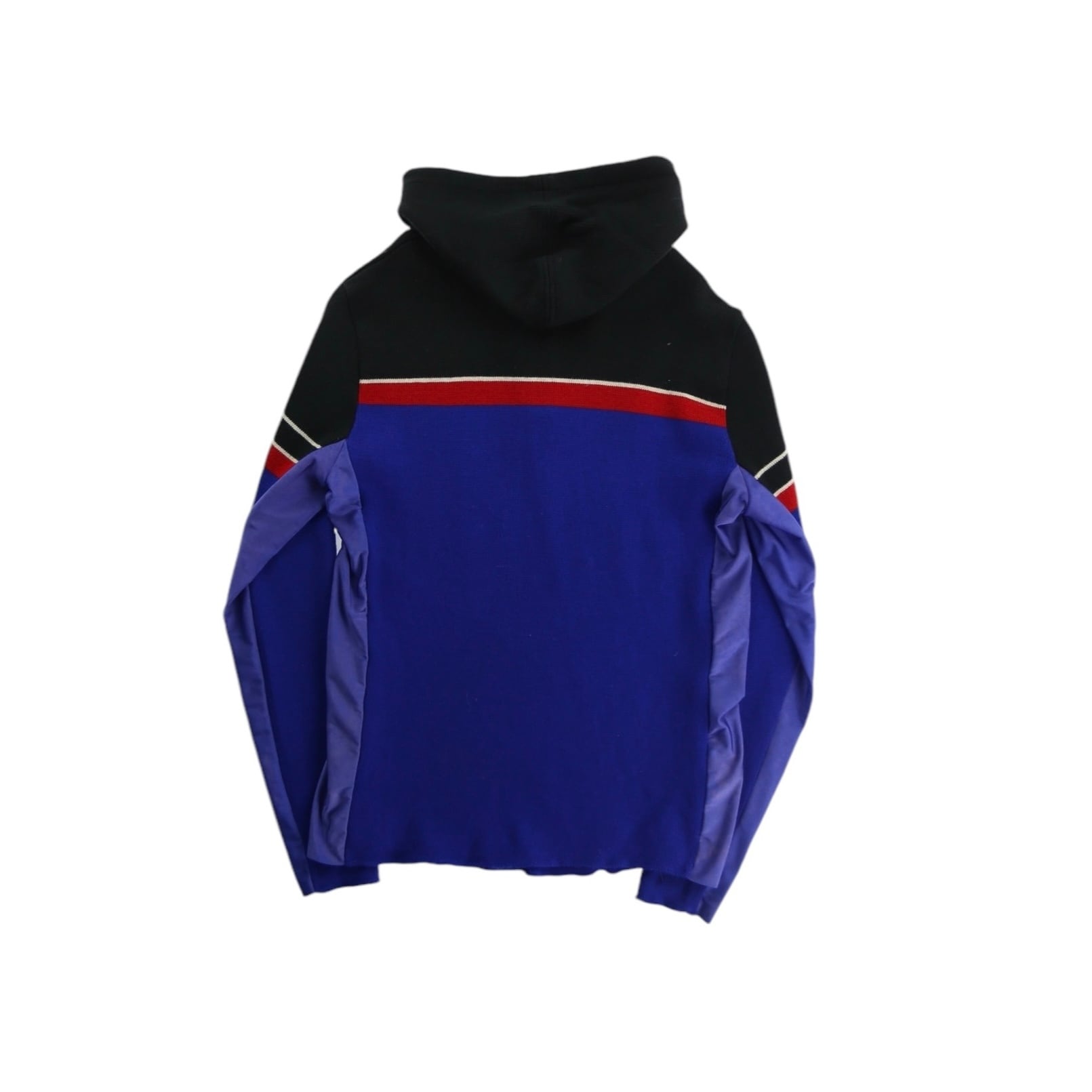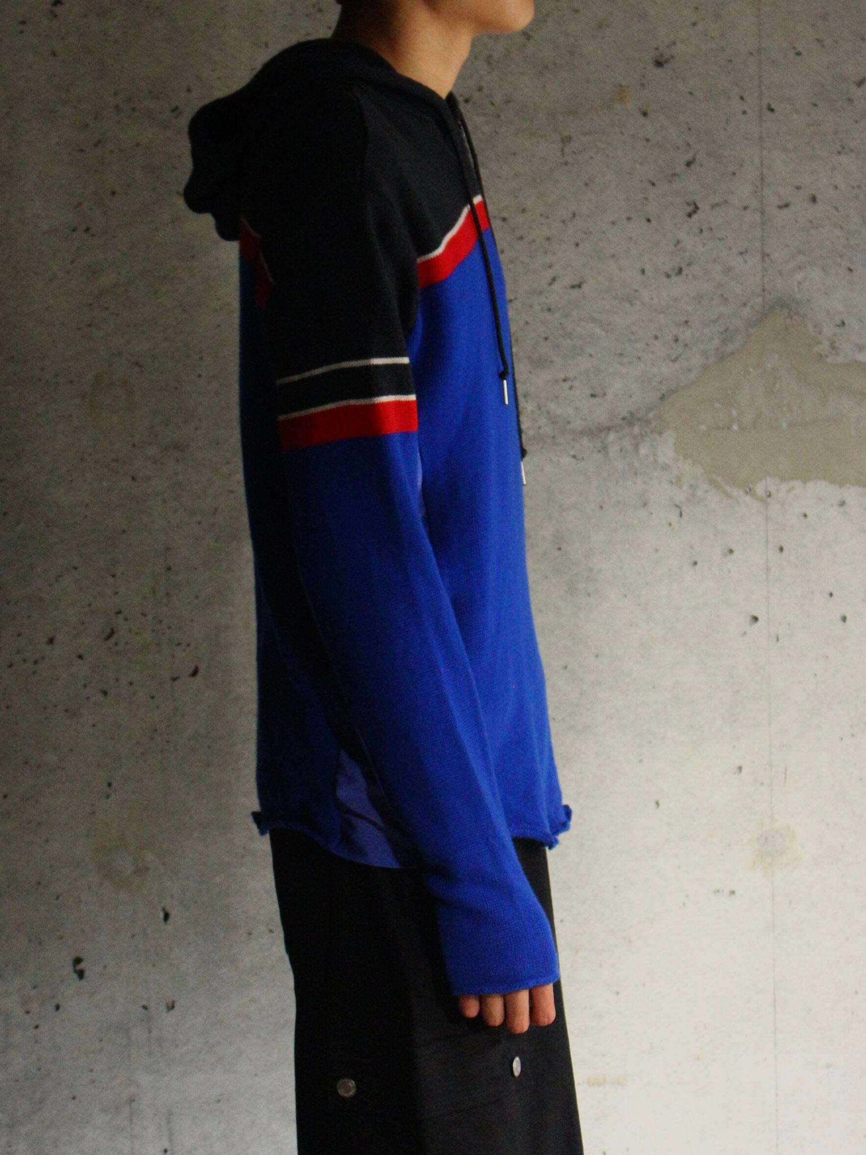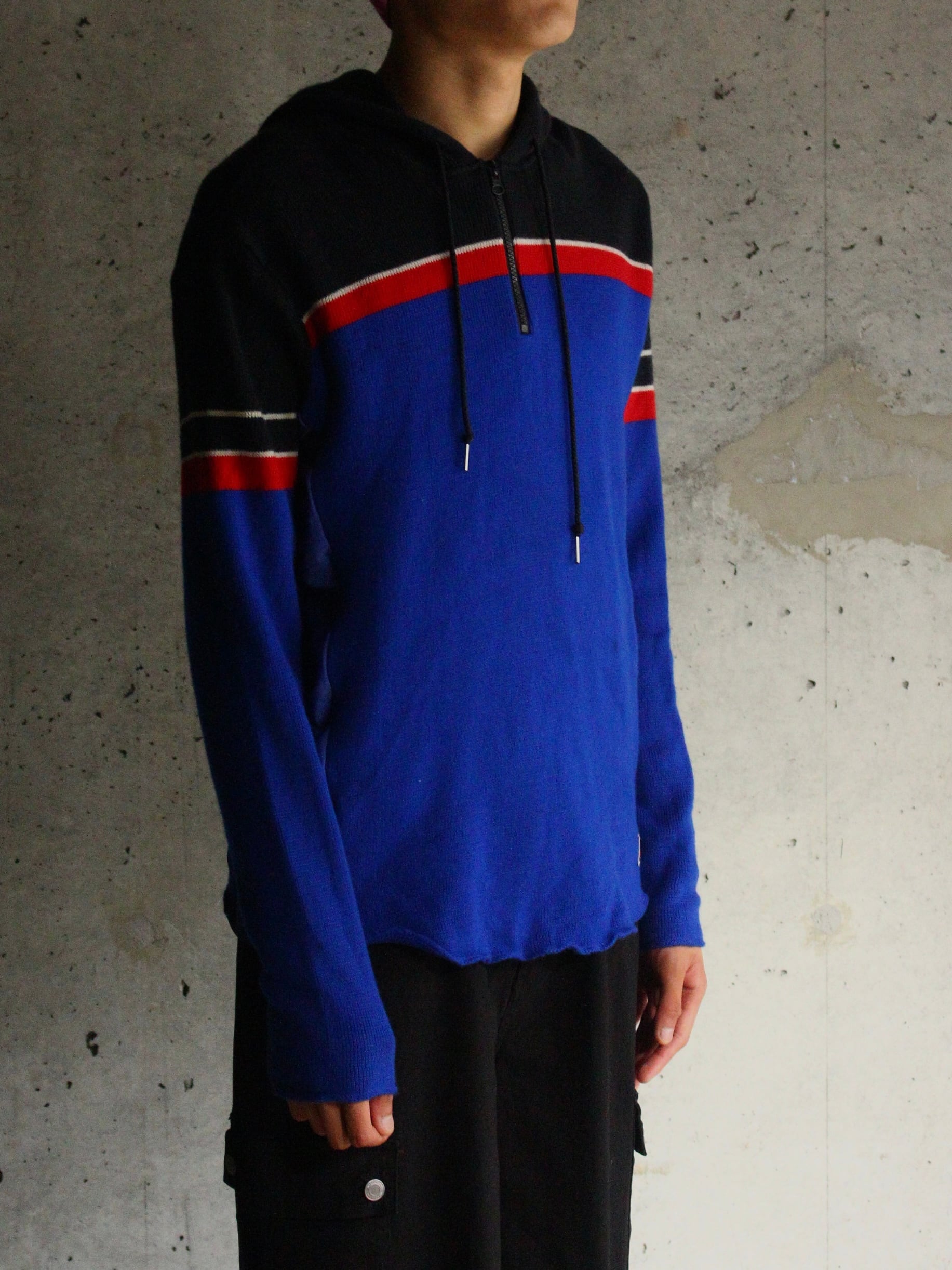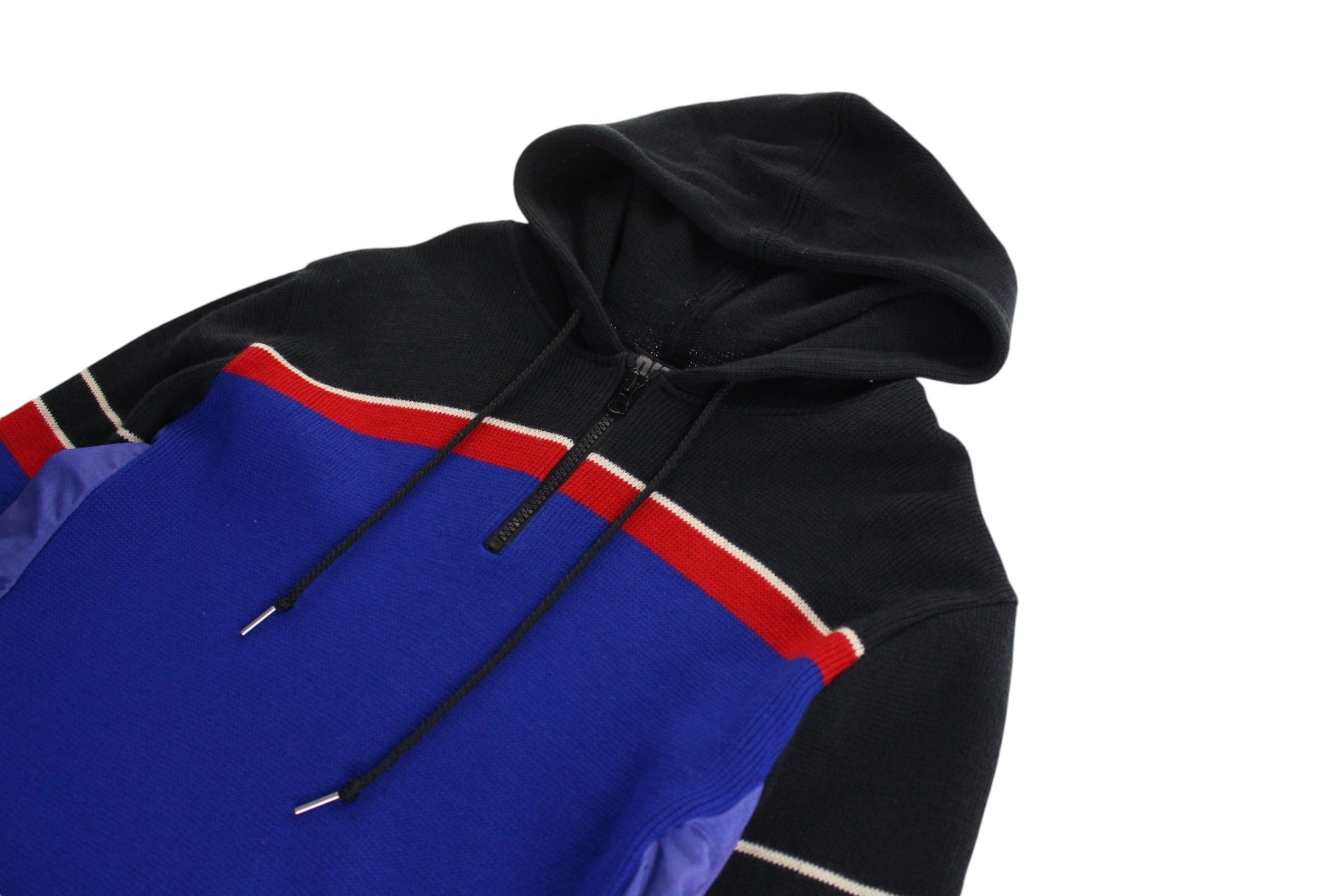 フロントはハーフジップにボーダーの切替、脇下はサテン生地での切替と、このブランドらしいラグジュアリーにもストリートにも映えるクールな一着です☺︎
