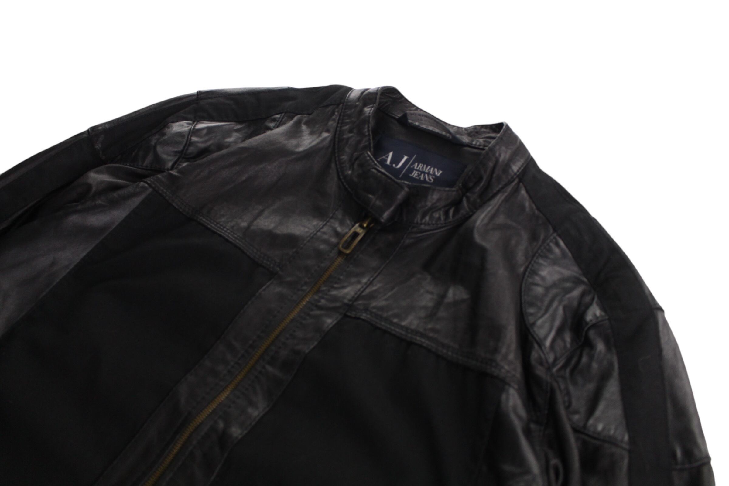 アルマーニジーンズから切替デザインのダブルジップレザージャケット。