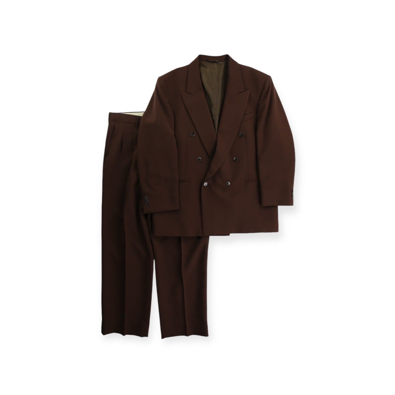 【COU】1990's vintage suit set up double breasted tailored jacket / 2tuck wide slacks made in USA -4938-