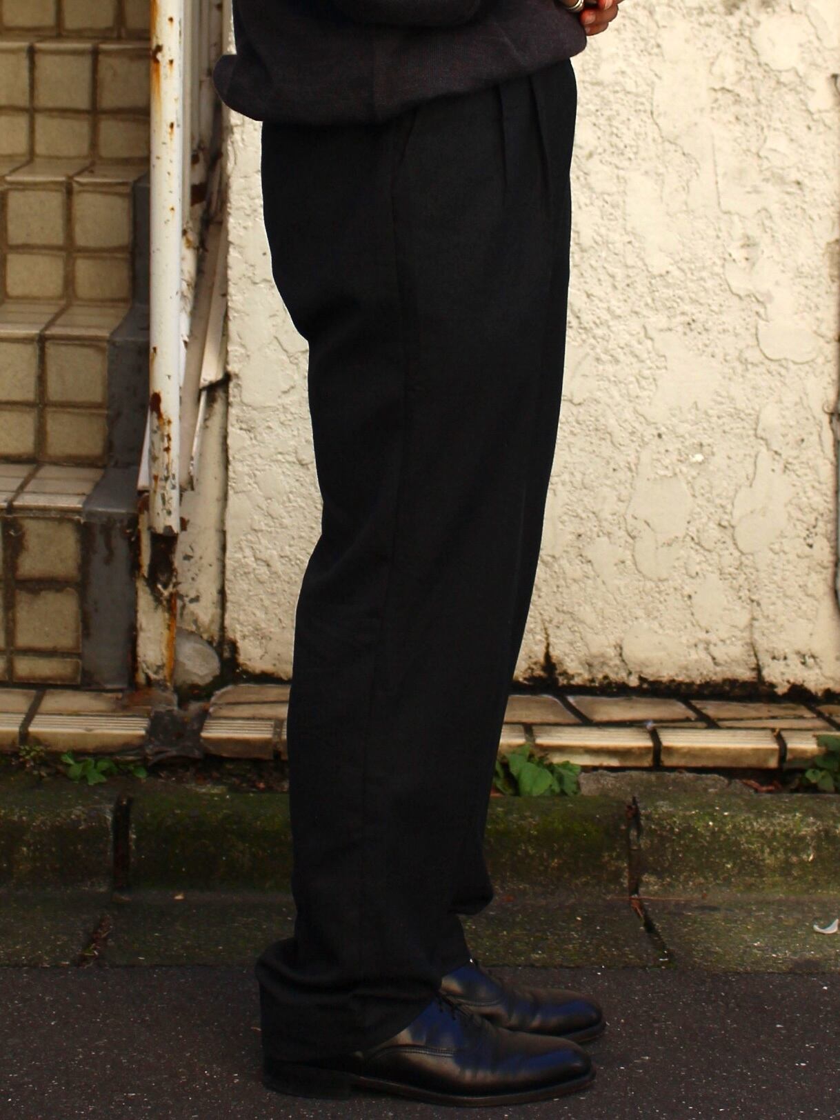 程良いテーパードの効いたシルエットに、腰回りは2タック入ることでゆとりがあるので、ワイドシルエットで履いて頂けます。