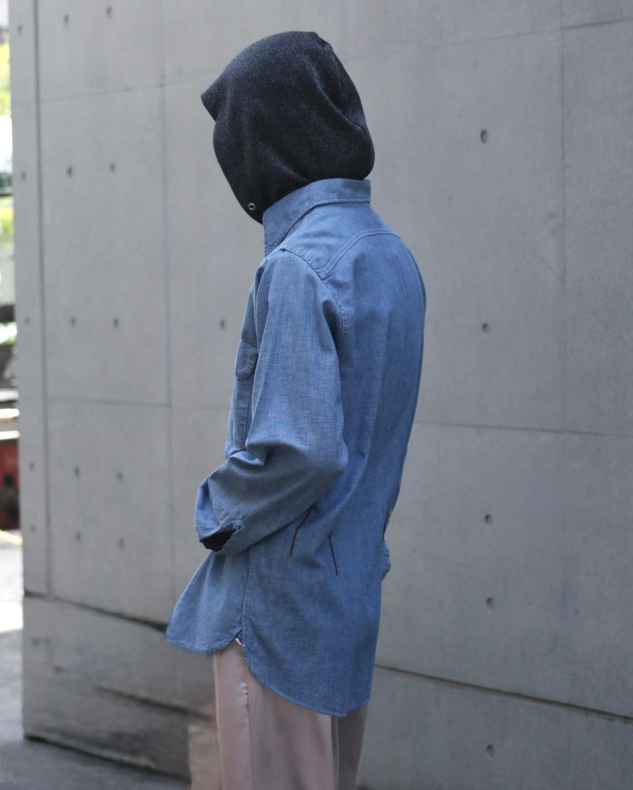 温もりを感じれる素敵なモチーフシャンブレーシャツです。