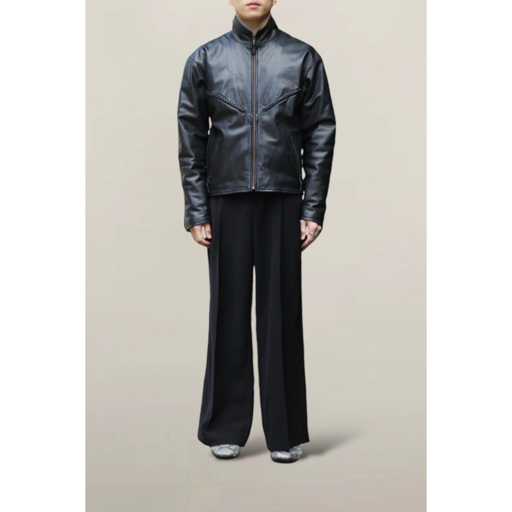 結構タイトな着用感で袖裏にジップがついているのもライダースのような1着。