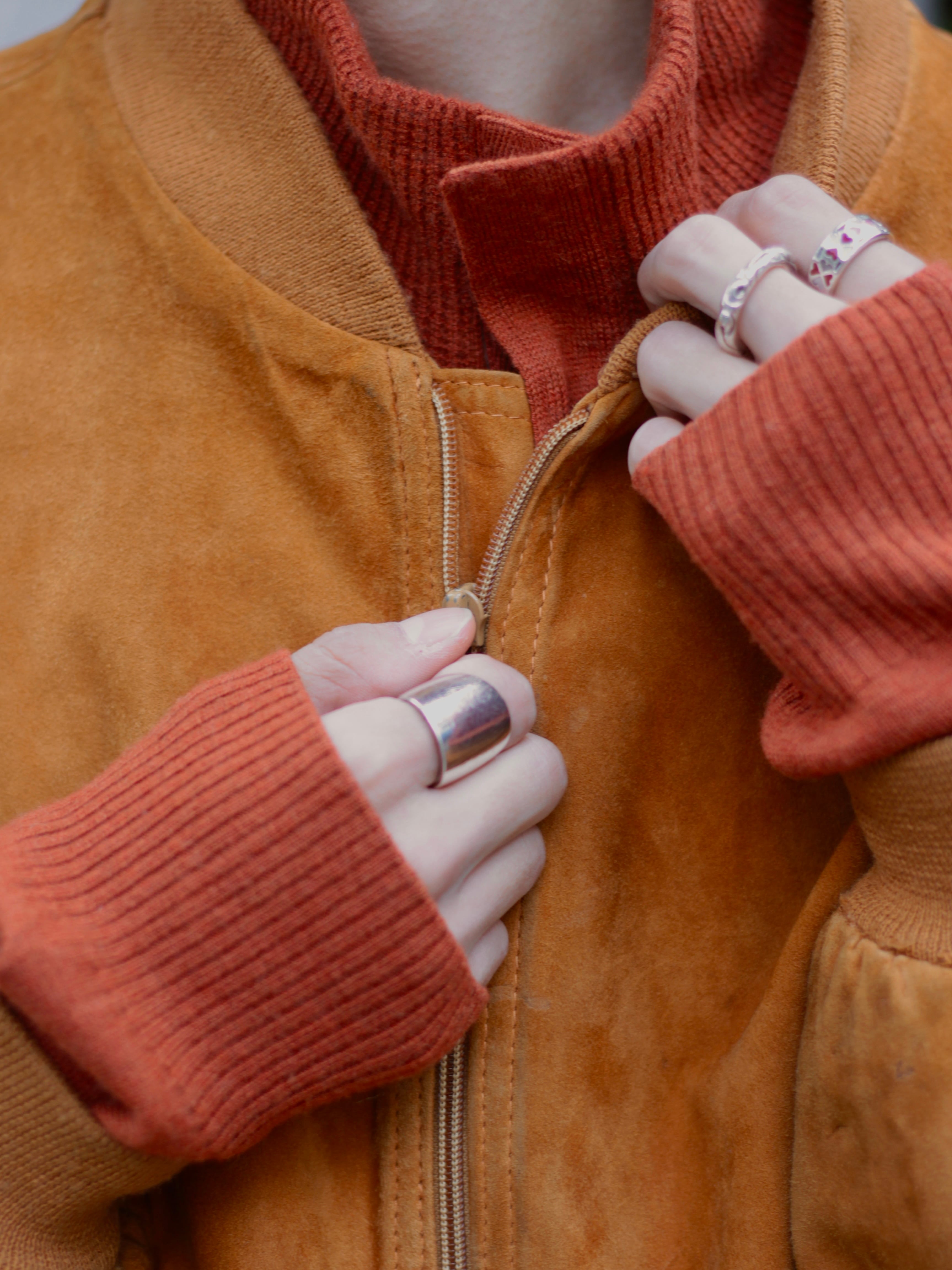 秋冬は黒やトーンの落ち着いたアウター,ライトアウターになりがちですがしっかりと色味が可愛く使い勝手の良いフェイクスウェードなので心配なく着れちゃうかと!