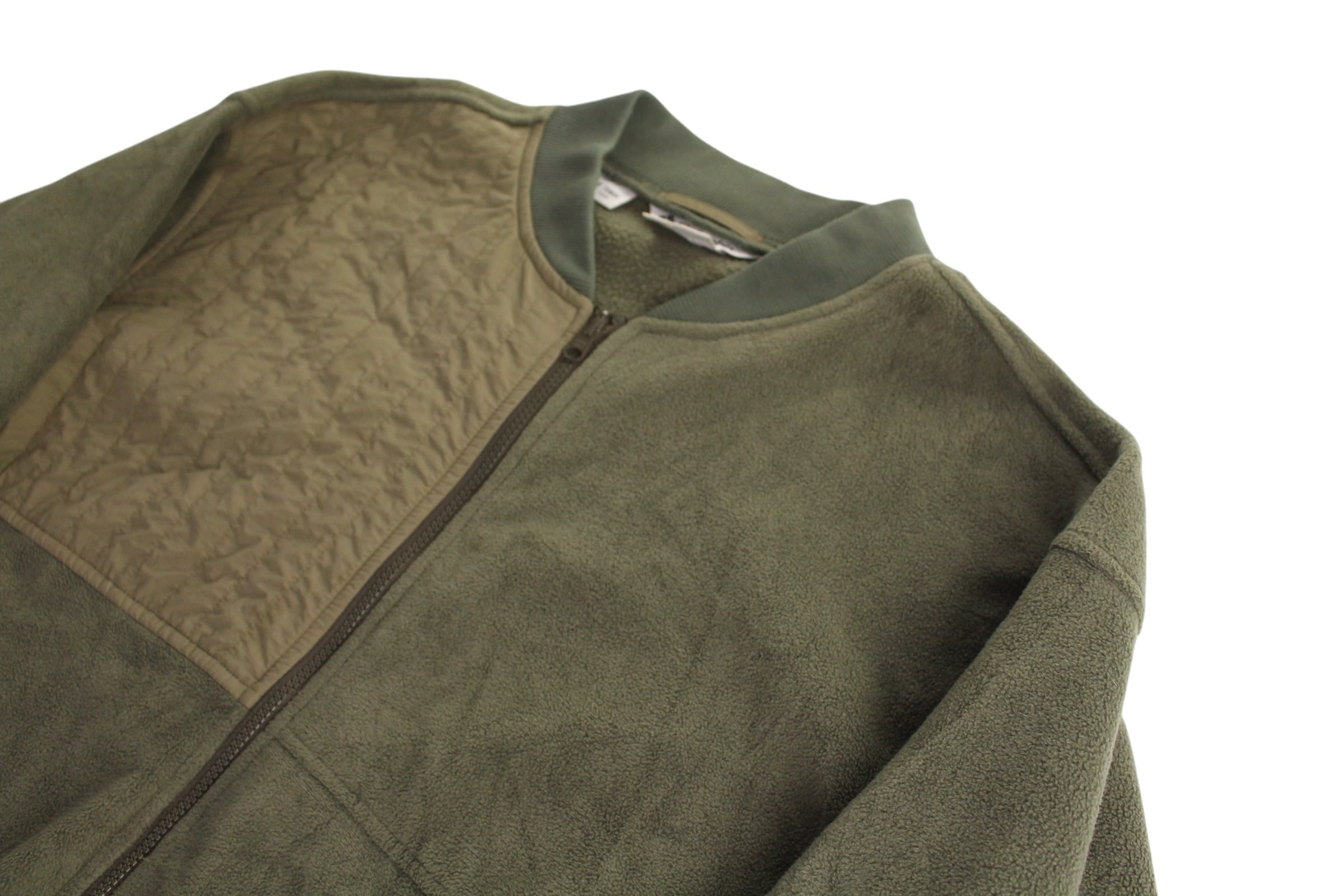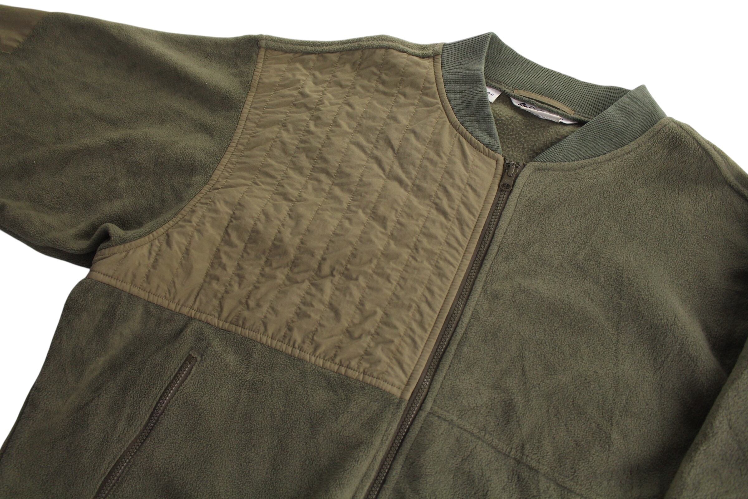 全体のフリース素材にキルティングのようなデザインが施されておりミリタリー感じるカーキグリーンカラーリング。