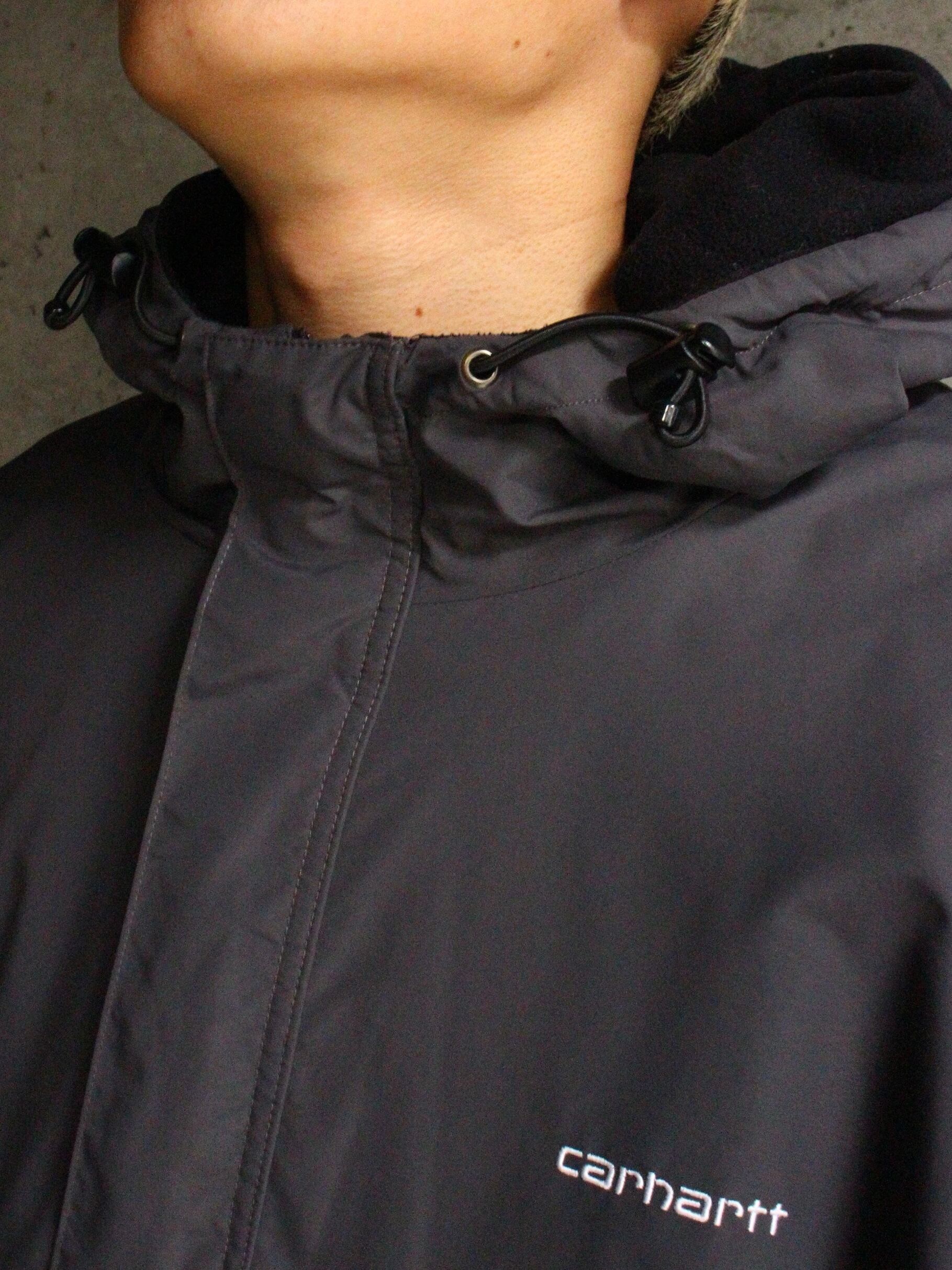 カーハートらしいタフな高密度ナイロンに裏地フリース地のコレからの時期に嬉しい一着です。