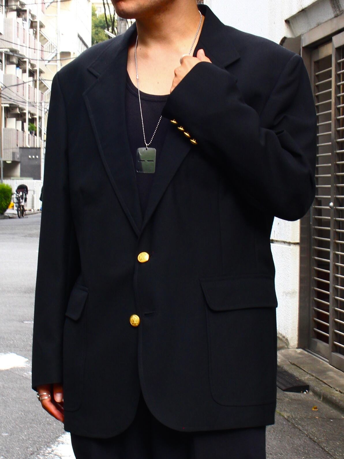 今回ご紹介のジャケットはブラック単色に金ボタンのバランスの取れた1着