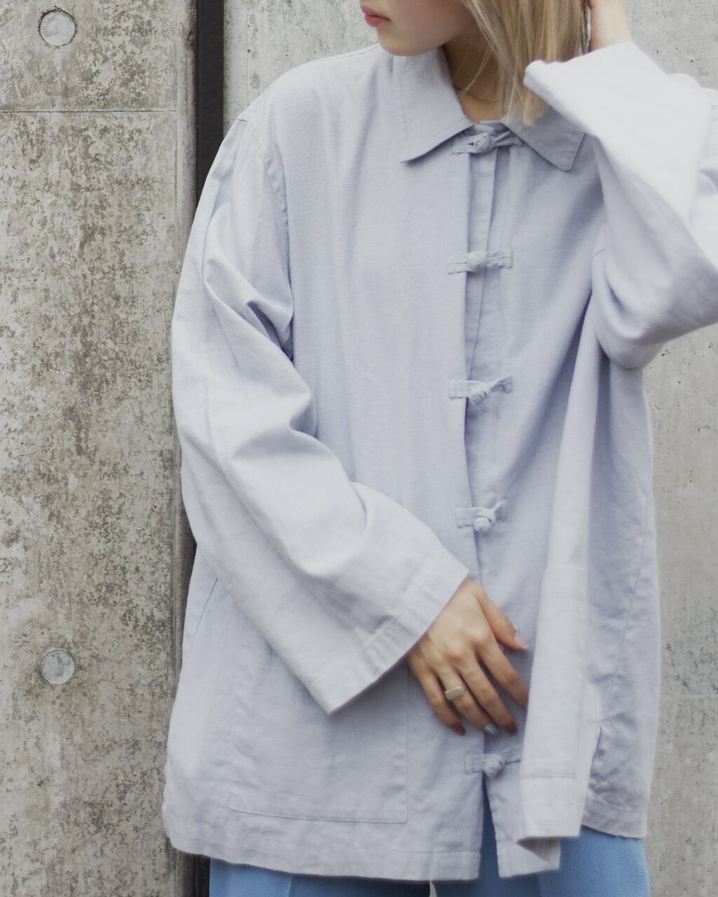 6つの襟付きでチャイナボタンにフロントに2つポケットがある仕様です。