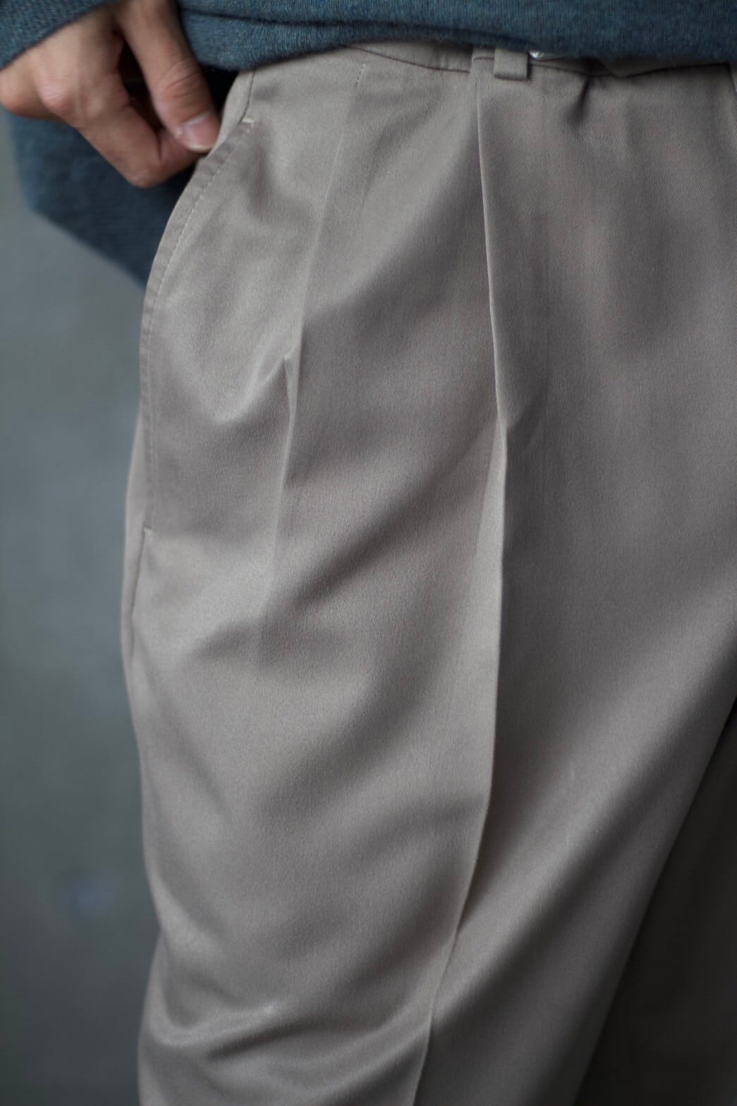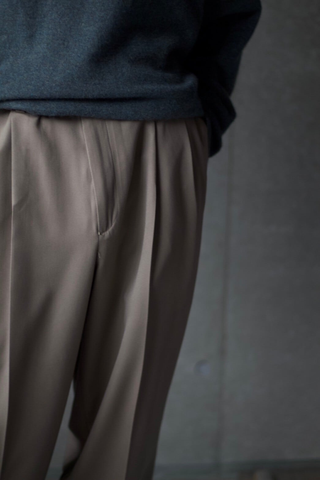 2タックで腿辺りから出るゆとりのあるワイドシルエット。