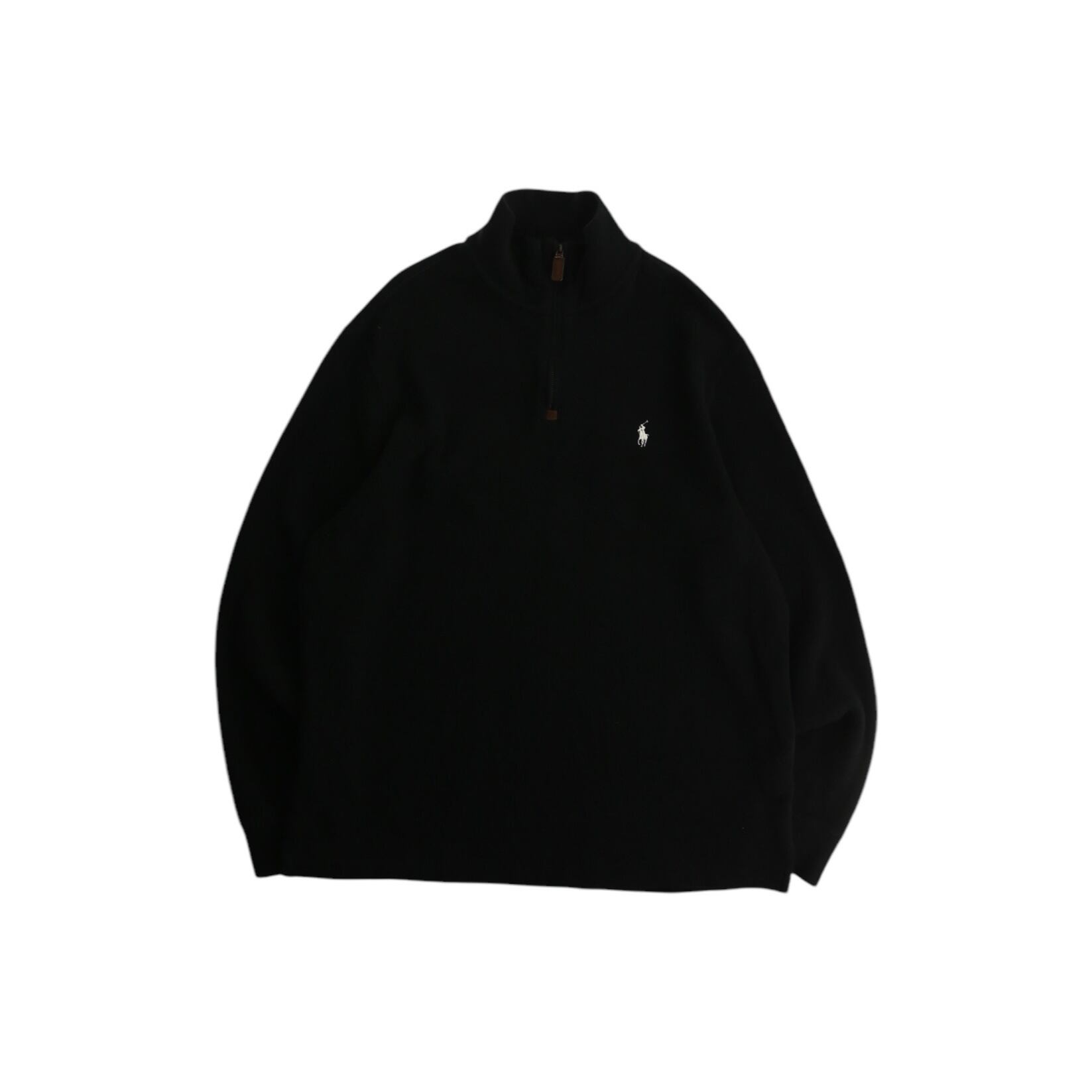 【FIFTY-FIFTY】1990s Polo by Ralph Lauren black half zip knit sweater -9945-