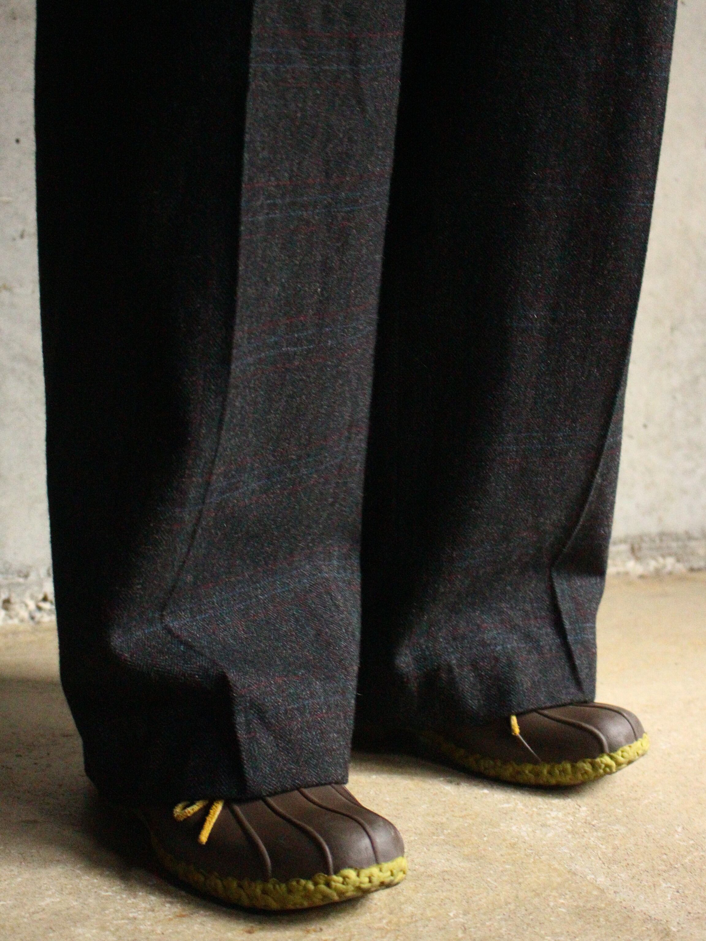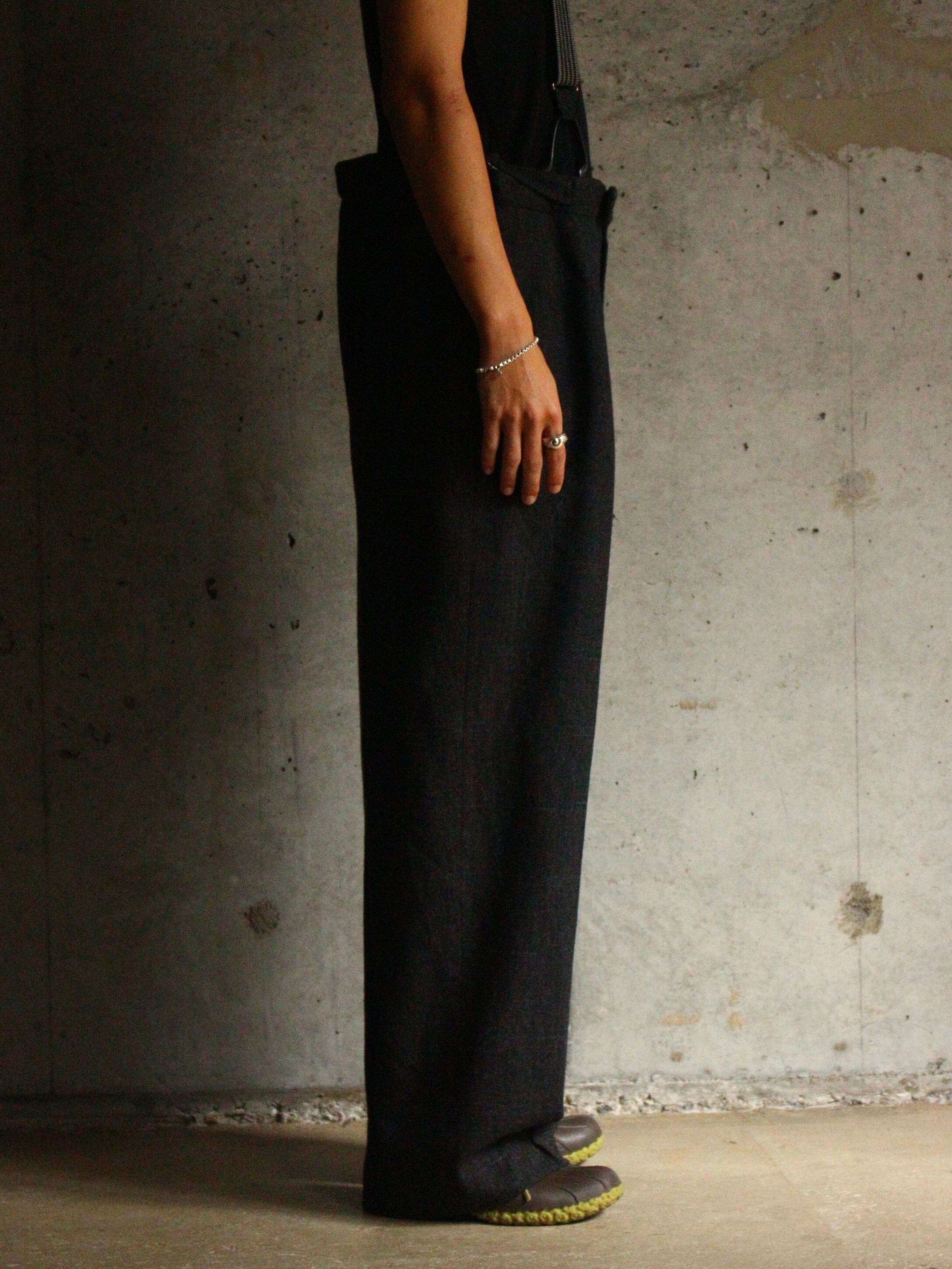 ヘリンボーン生地のワイドシルエットスラックスが入荷致しました。しかも、取り外しできるサスペンダー付☺︎