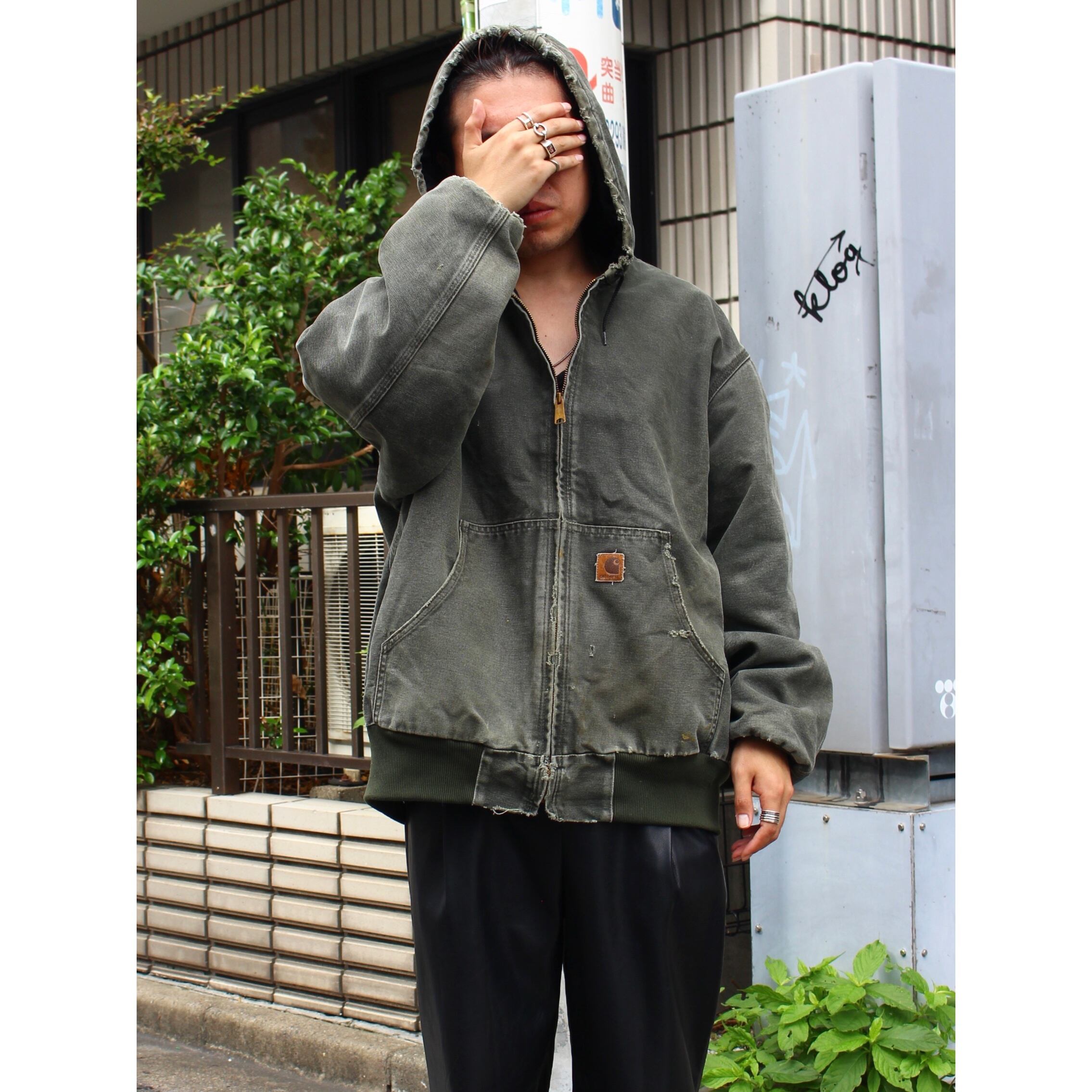 【CUBA】1990s vintage "Carrhart" nice boro fade olive color active jacket-8116-