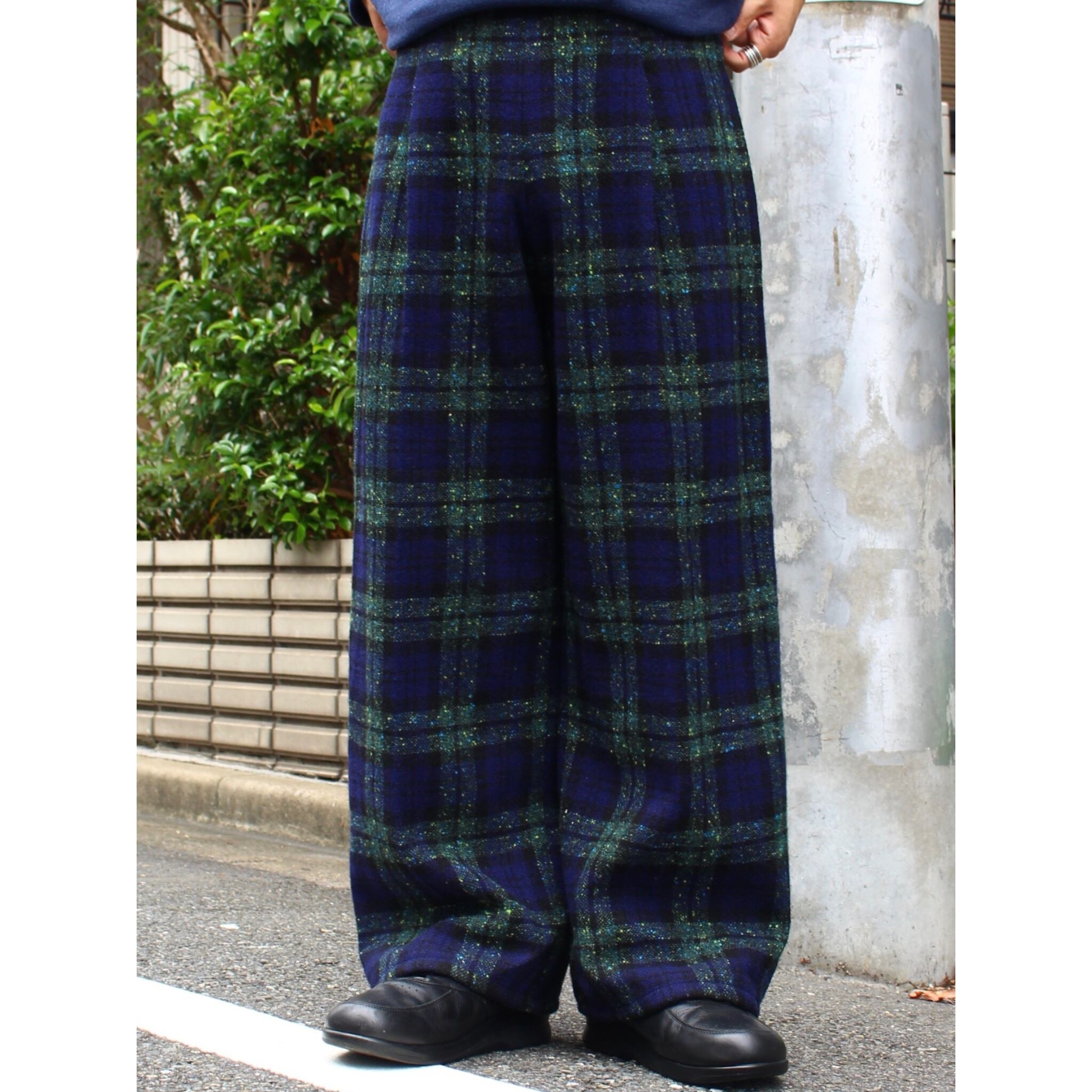 【CUBA】Black watch pattern buggy flare 1tuck easy pants-8118-