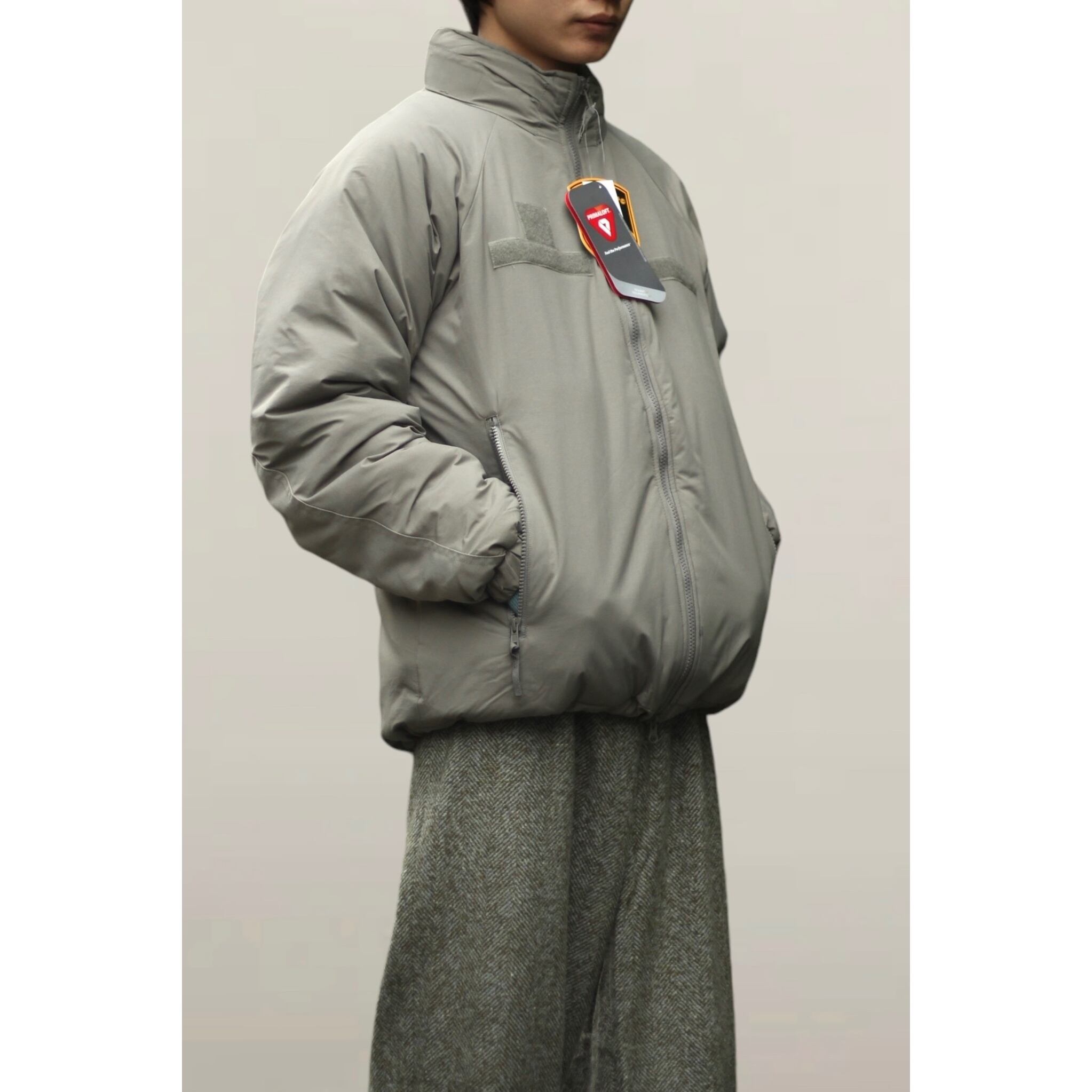 実際、軍で納入されているプリマロフトジャケットをベースに使われている生地、プリマロフト、パーツなど細部まで同様に仕立て上げた民間用のアイテムになります。