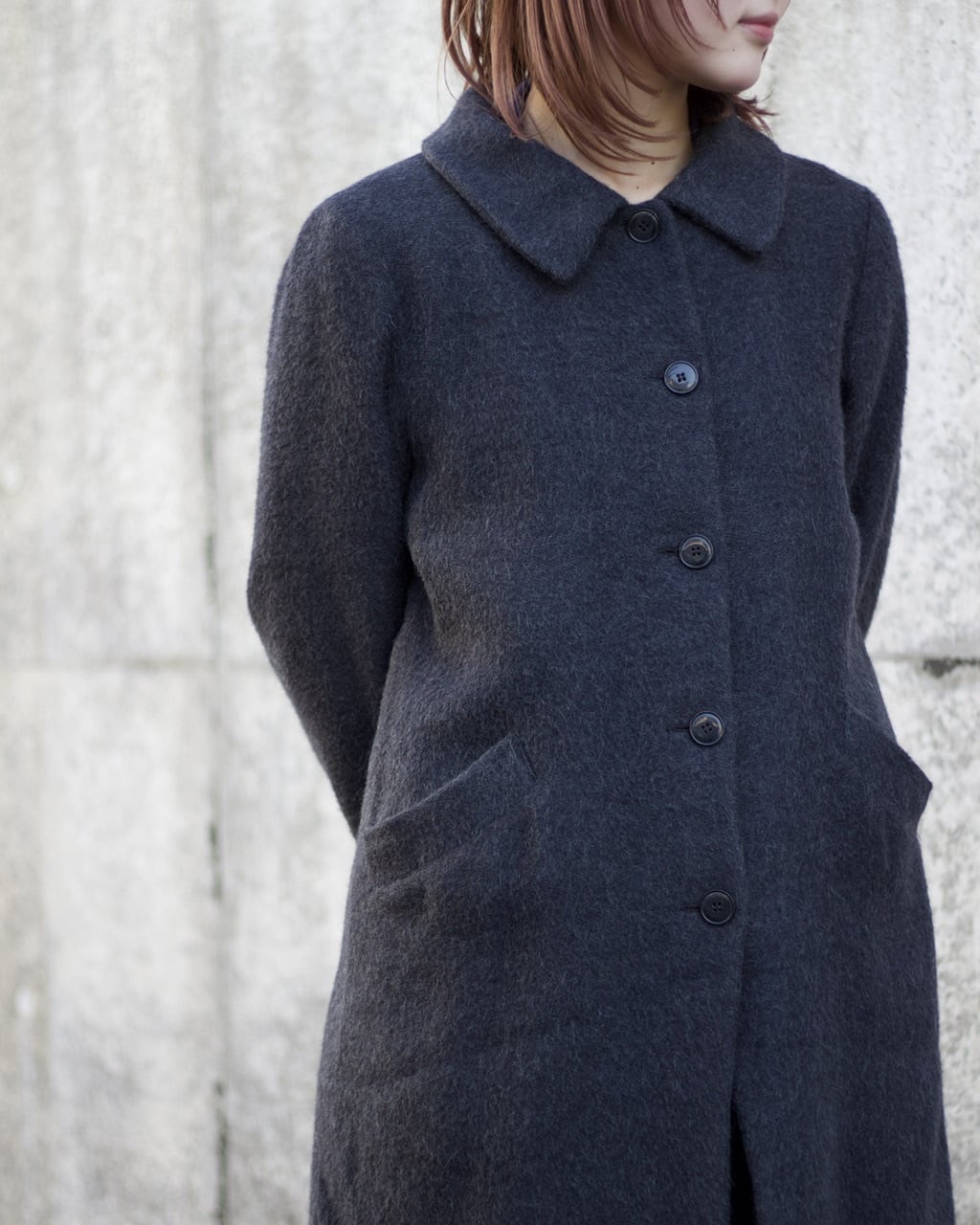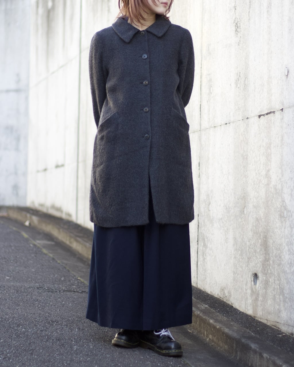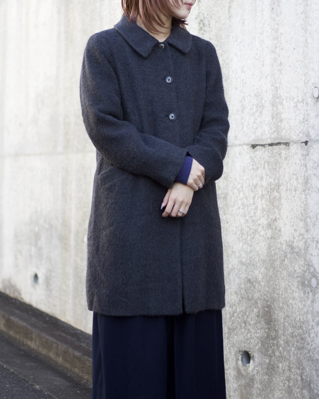 ファブリックは贅沢にアルパカ、モヘアが使われており、アルパカ素材はシルクのようななめらかで肌触りが非常に良く、どちらの素材も保温性があるのでこれからの時期、秋冬に活躍してくれるアイテムです。