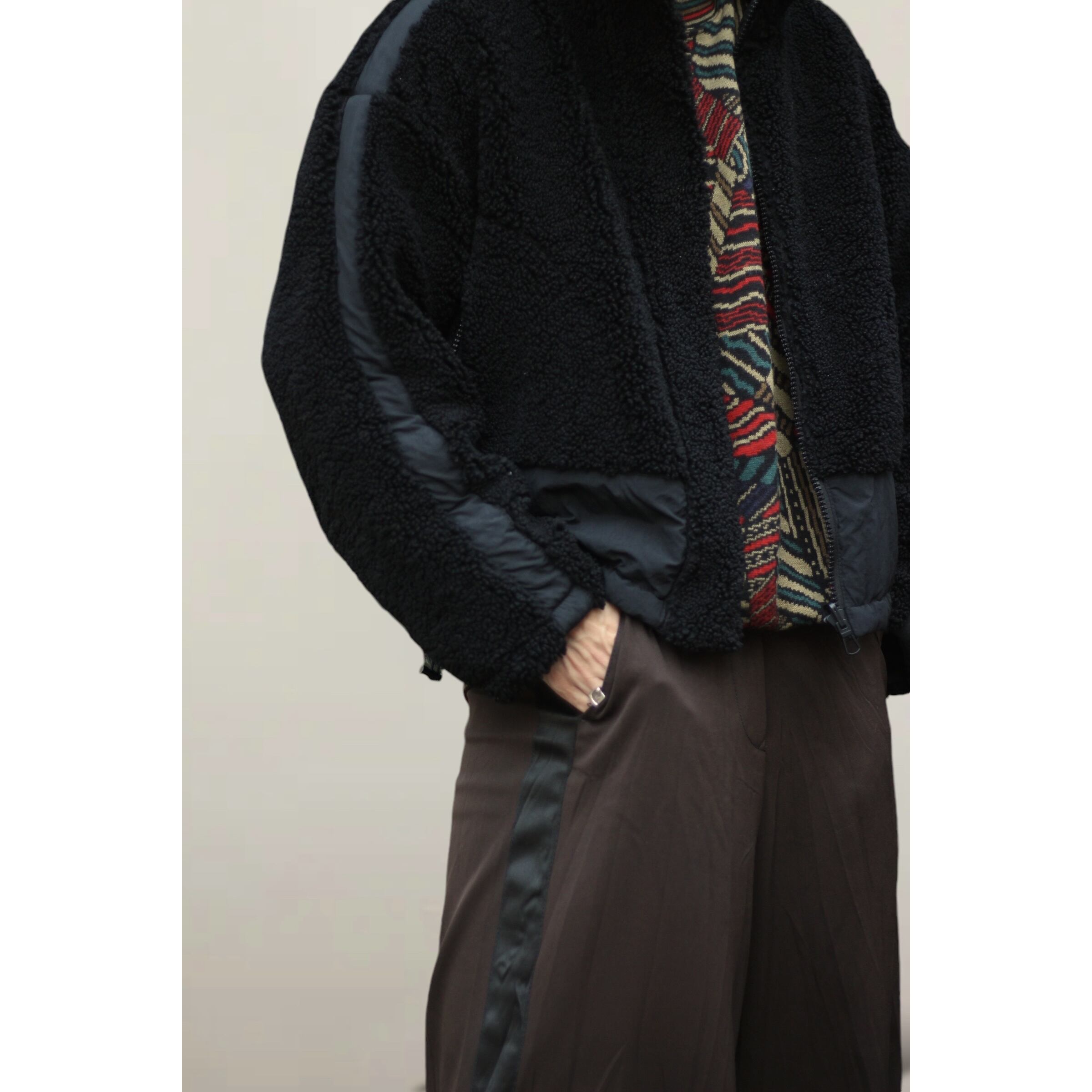 程よいボリューム感で触り心地がふわふわのボア。表面はアームラインや裾部分にも異素材切替が入っており立体感のある仕上がりに。