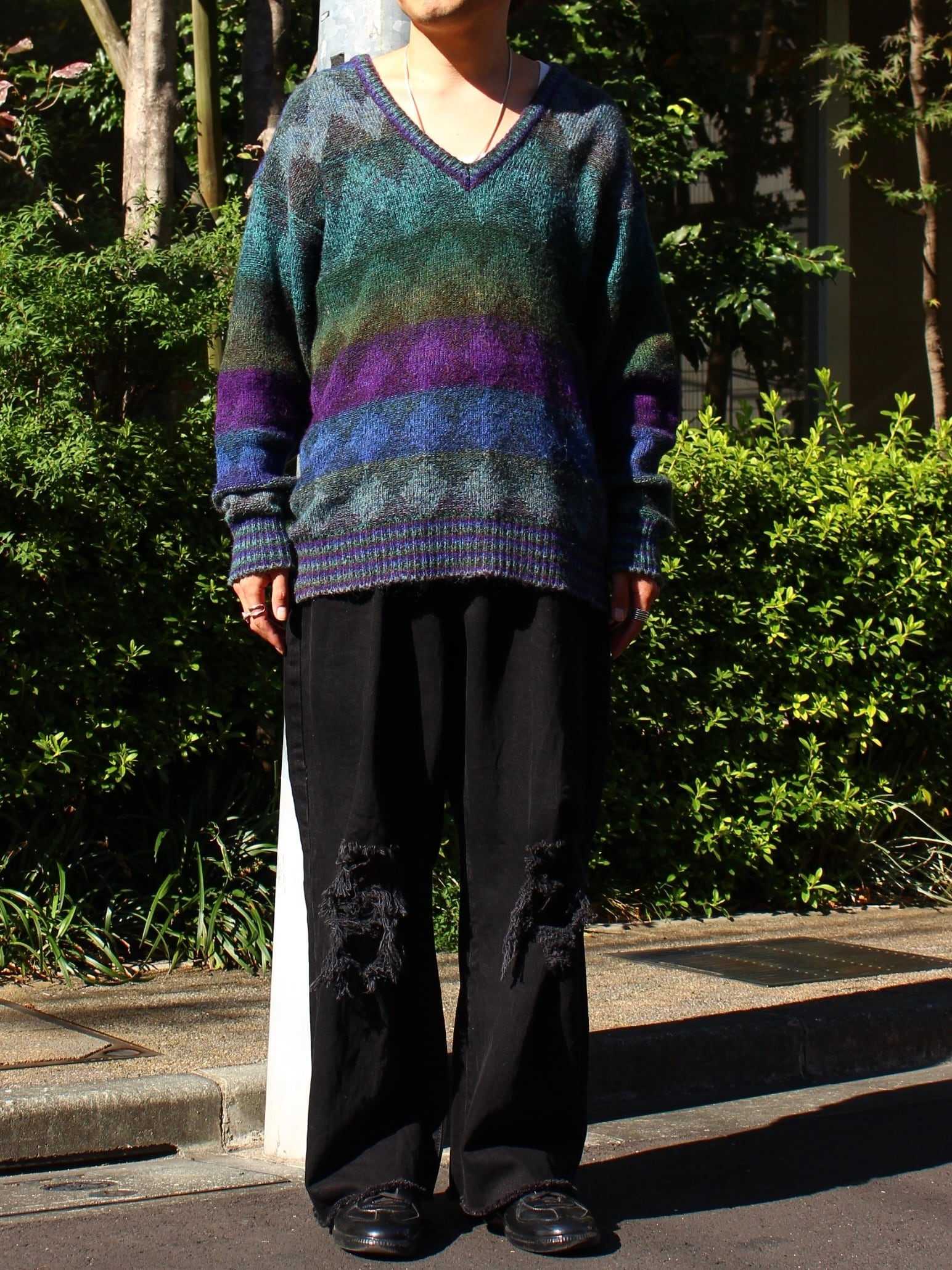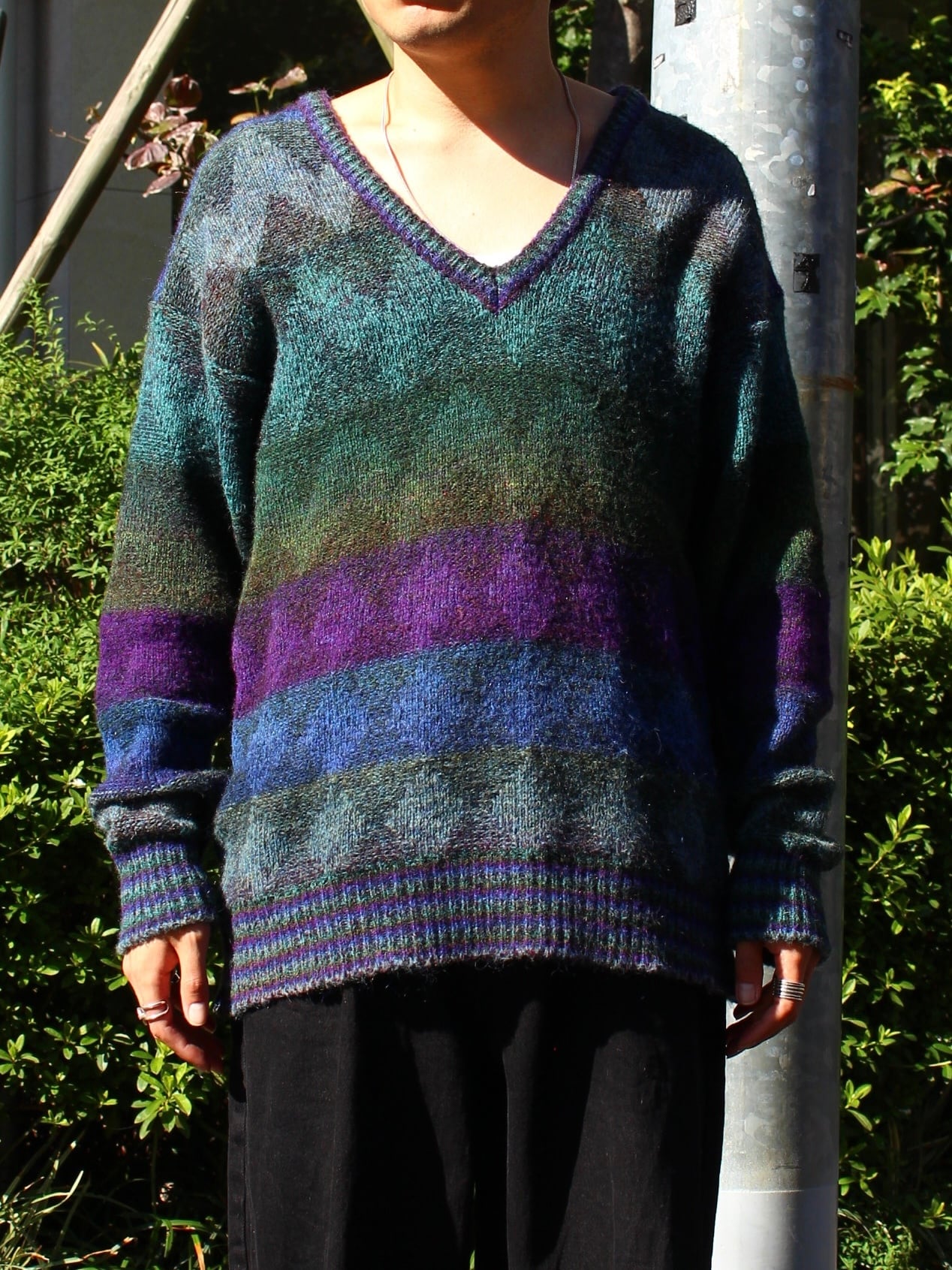 【CUBA】1980s vintage "Neiman Marcus" mohair mix multi color v-neck knit by DESIGNER COLLECTIONS-8140-