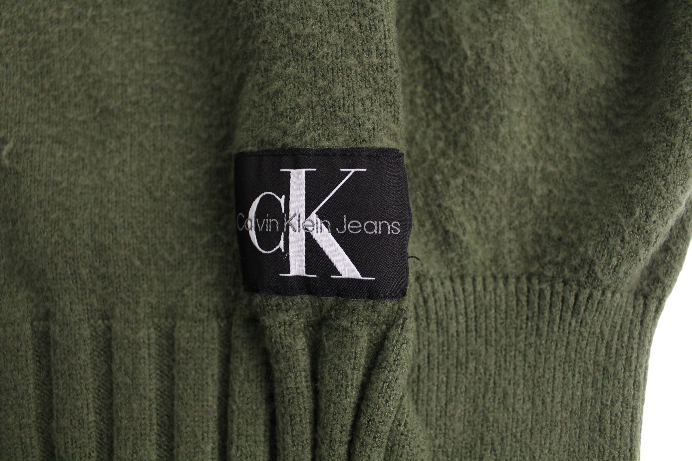 【CUBA】00s "Calvin Klein" left sleve one point logo design knit hoodie-8144-