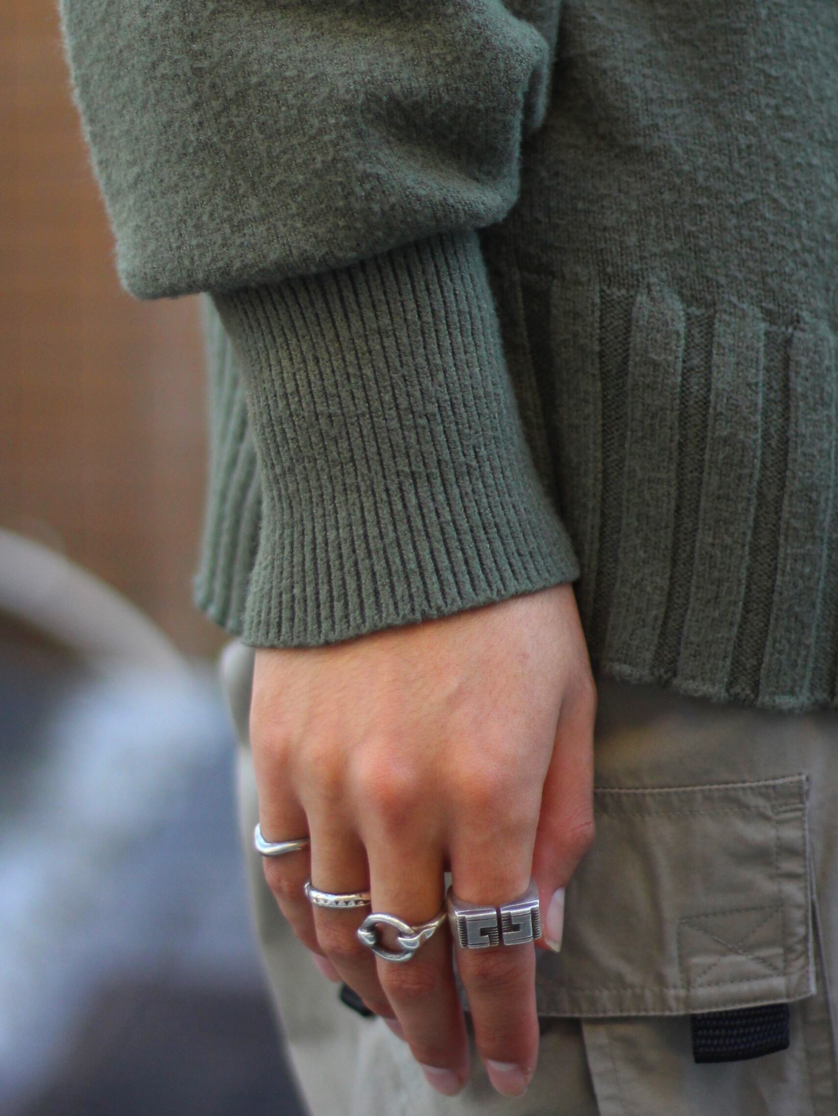 ミドルゲージ編みによる袖の溜まる感じも、とても可愛いらしくて、1枚でも様になります!