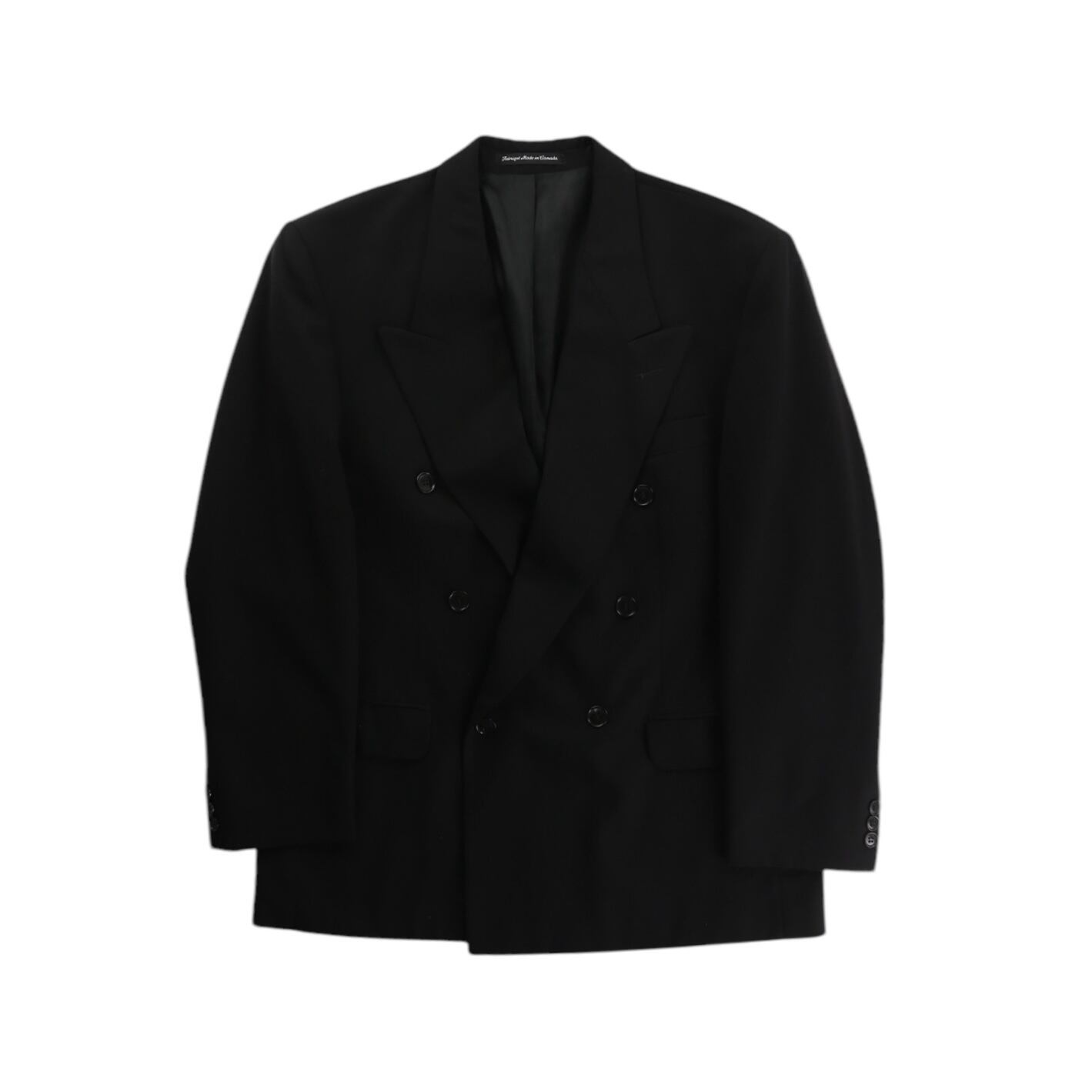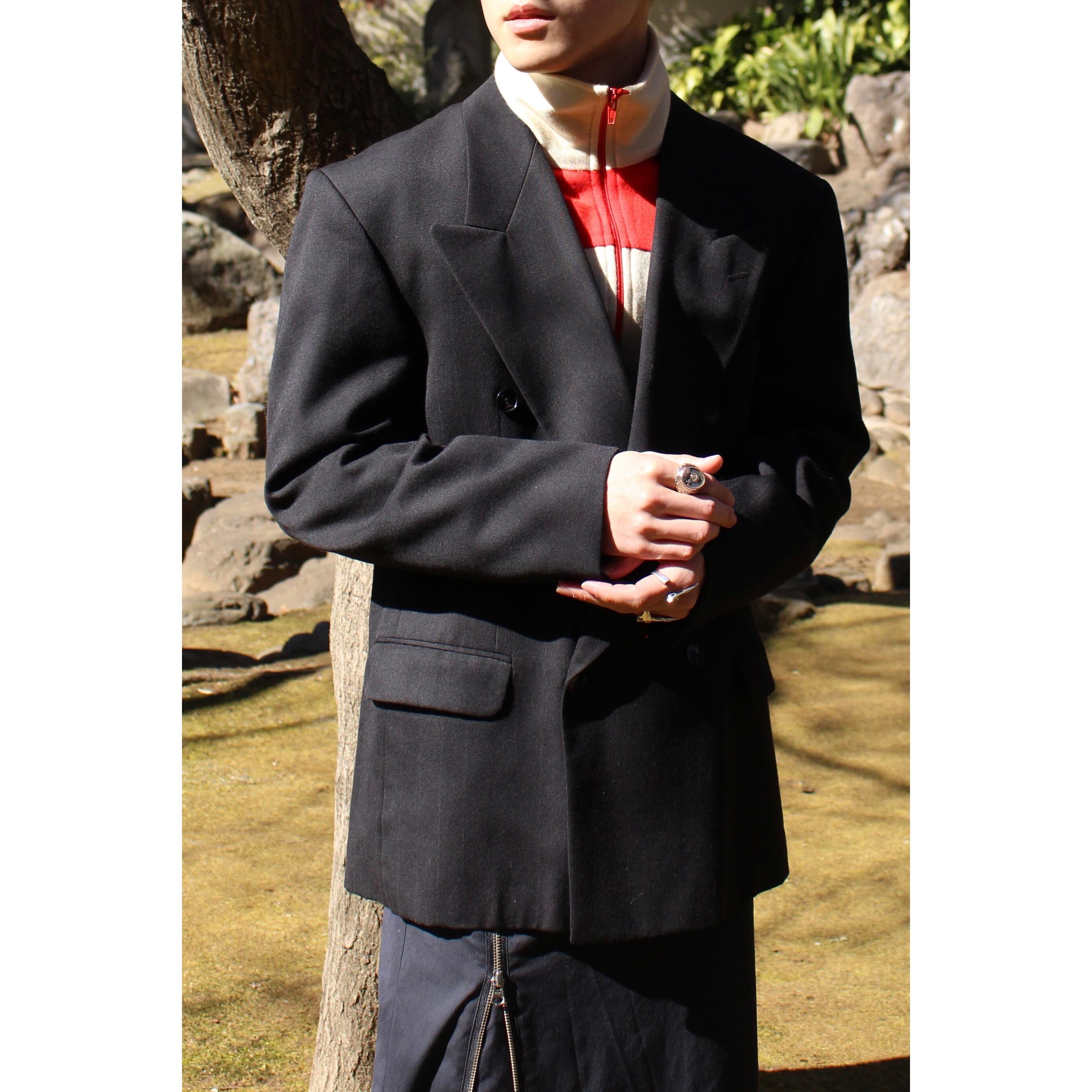 ダブルボタンで胸元の開きが逆三角形のように、シングルよりもシュッとクールな印象。