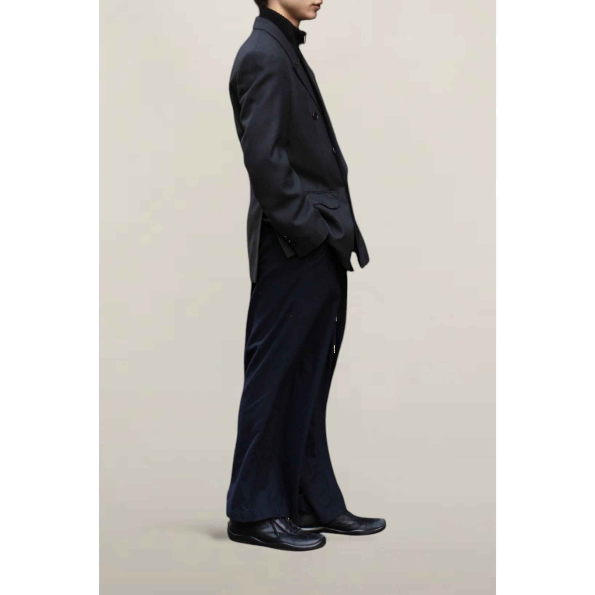 ファブリックは柔らかいウール。ギャバジンのような生地のとろみやツヤも感じます。