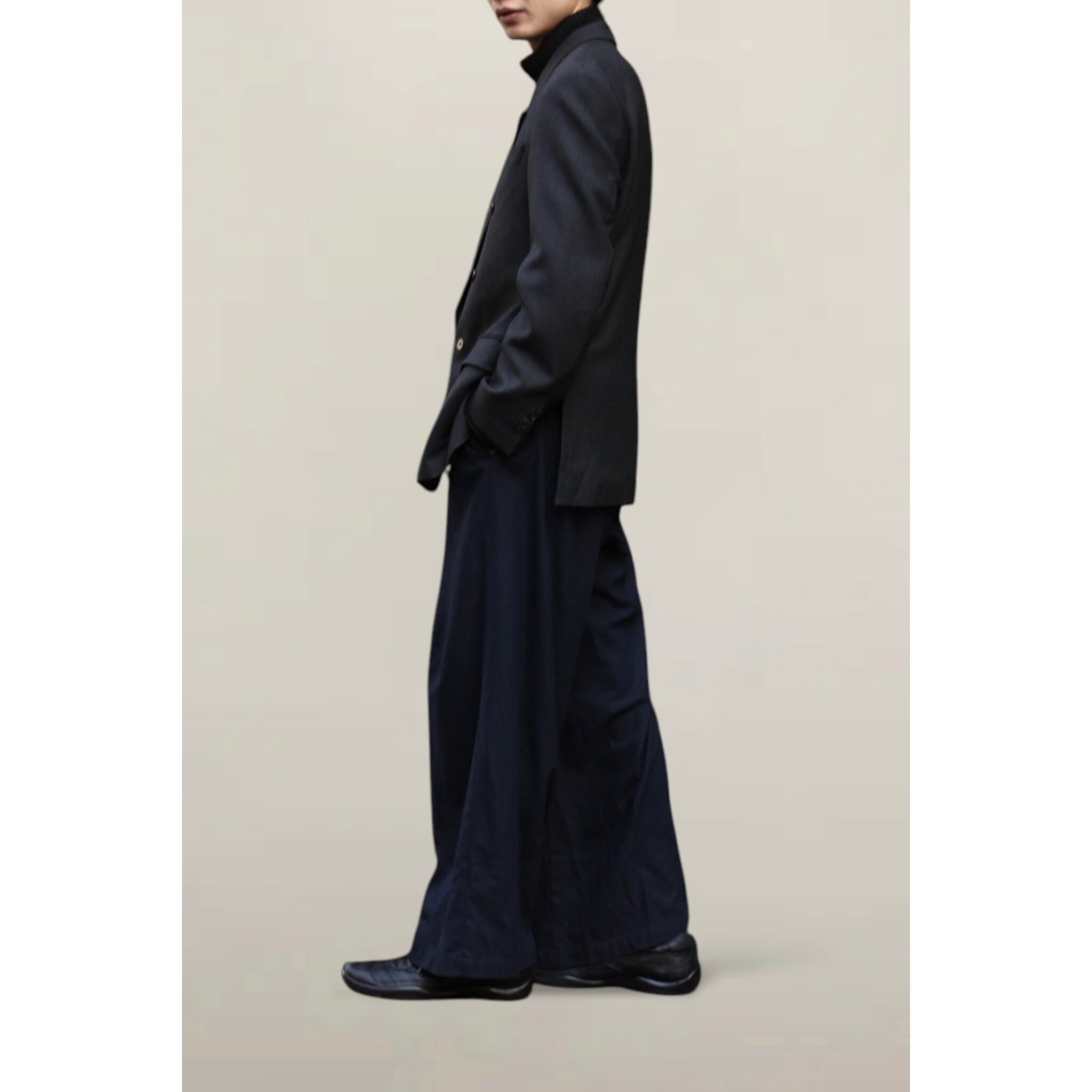 程よくゆとりのある肩幅、身幅に対して着丈のバランスが素晴らしい。サイドベンツが広がるAラインが格別です。。