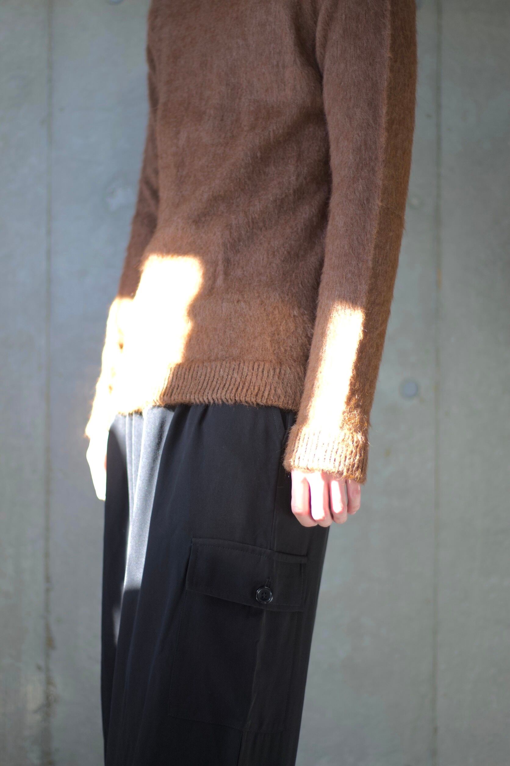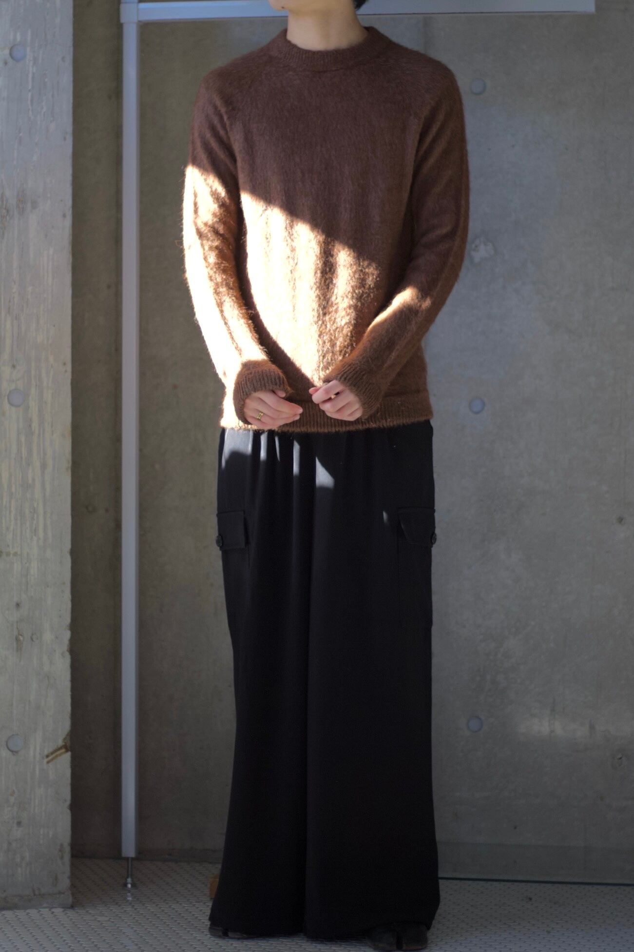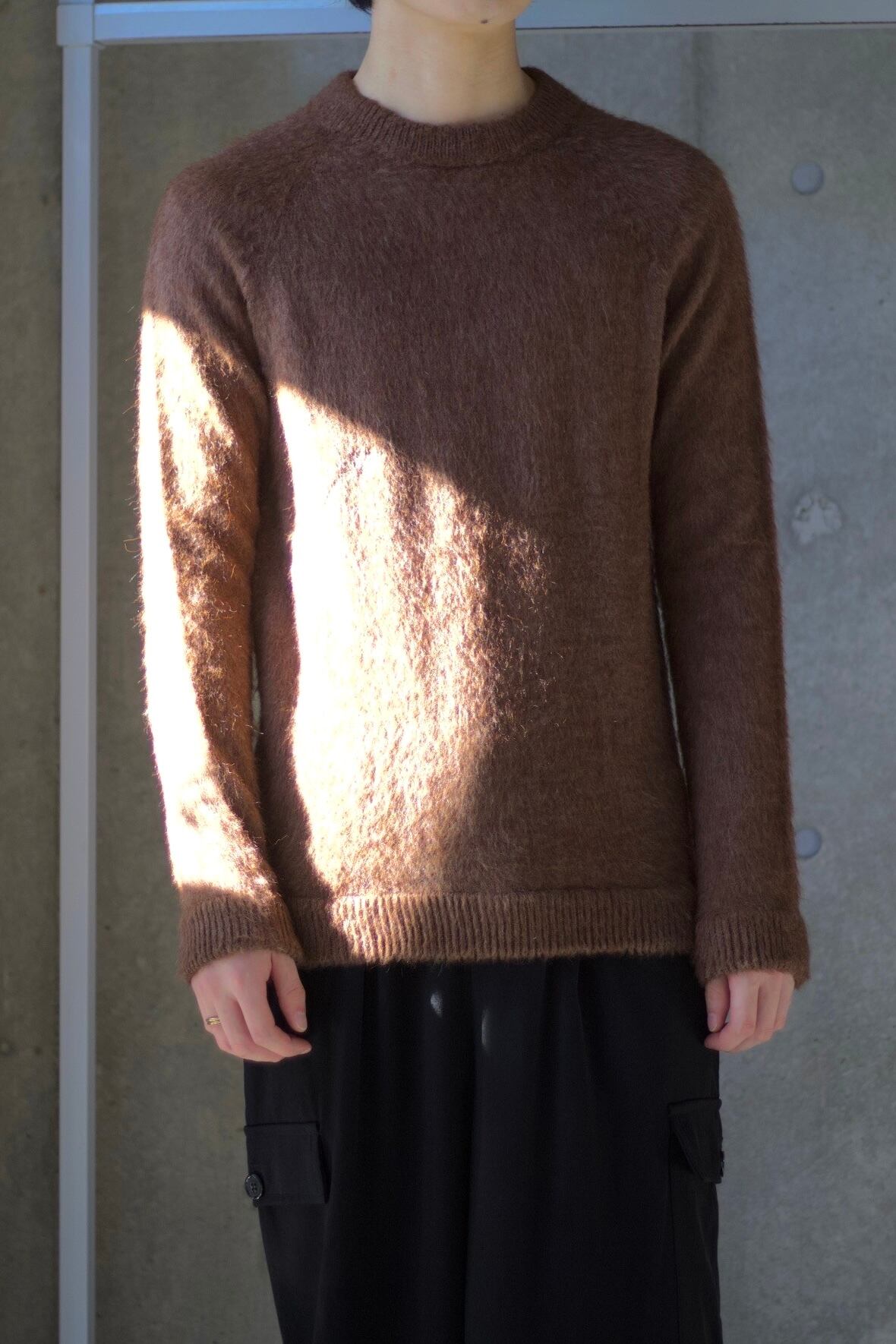 南米アンデス山脈で育ったアルパカの毛を使用したクルーネックシャギーニット。