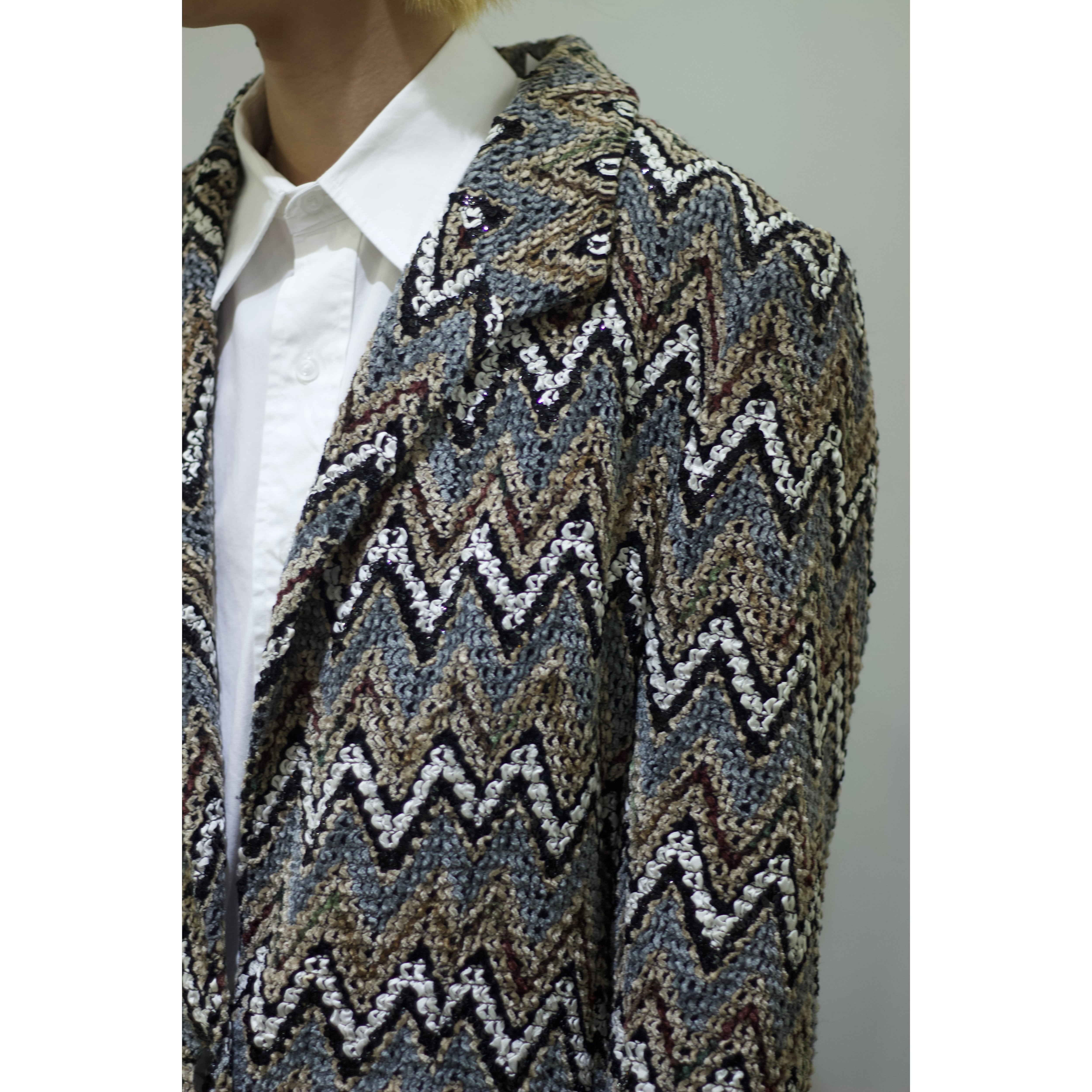 スパンコールシェブロンストライプシングルテーラードジャケット◎