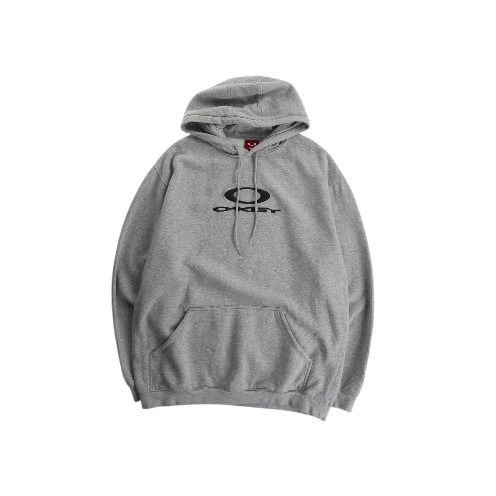 しっかり深めのカンガルーポケットにフーディの立ちが素晴らしくフロントにアイコニックなoakleyのプリント!