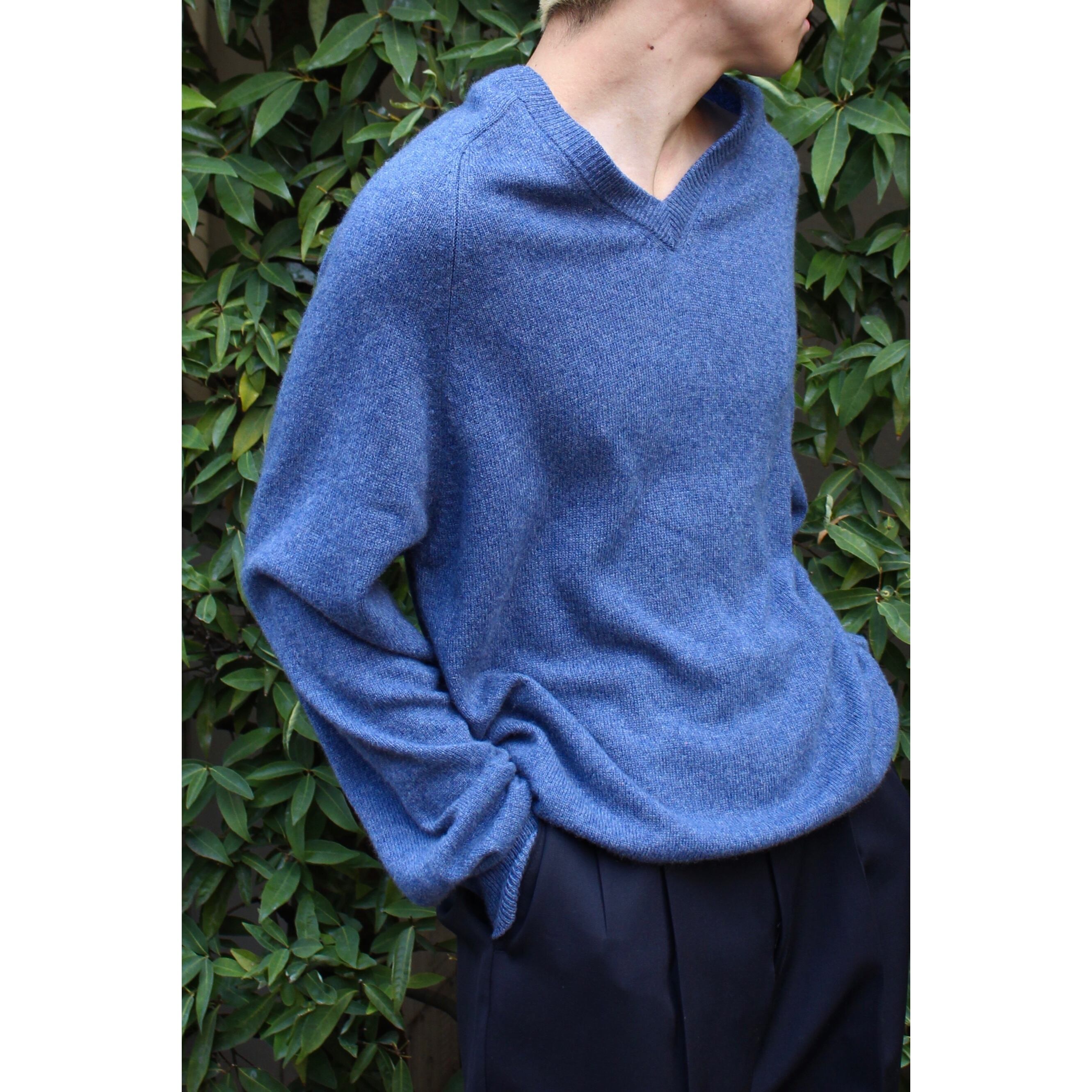 落ち着いたブルーカラーで冬のインナーとしてもいい差し色に。