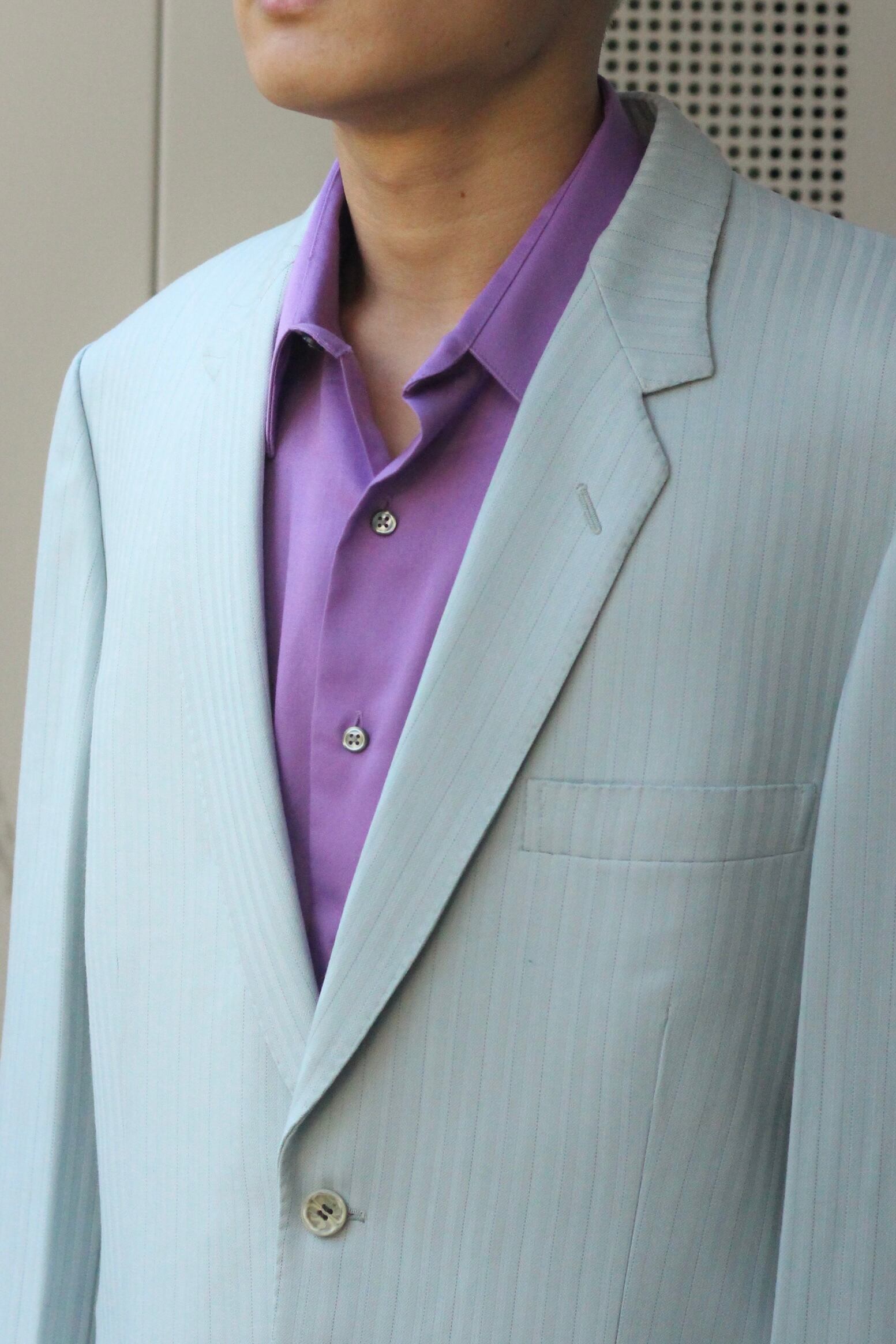 この時期になると着たくなるスーツセットアップ、街中でも勿論、結婚式や成人式なんかの祭典事でも楽しんで頂ける逸品だと思います☺︎