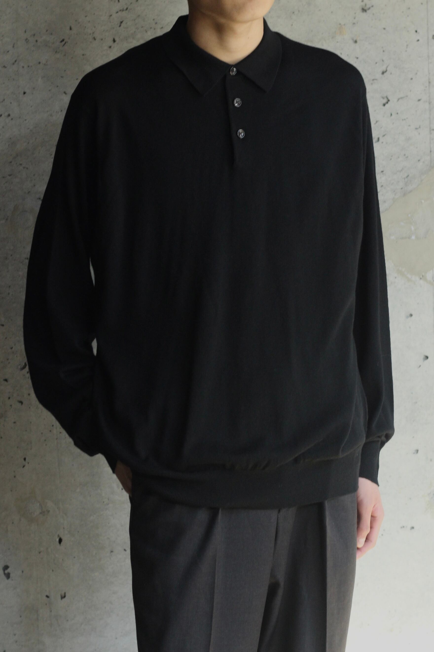 【FIFTY-FIFTY】BLACK color merino wool Knit polo -9981-
