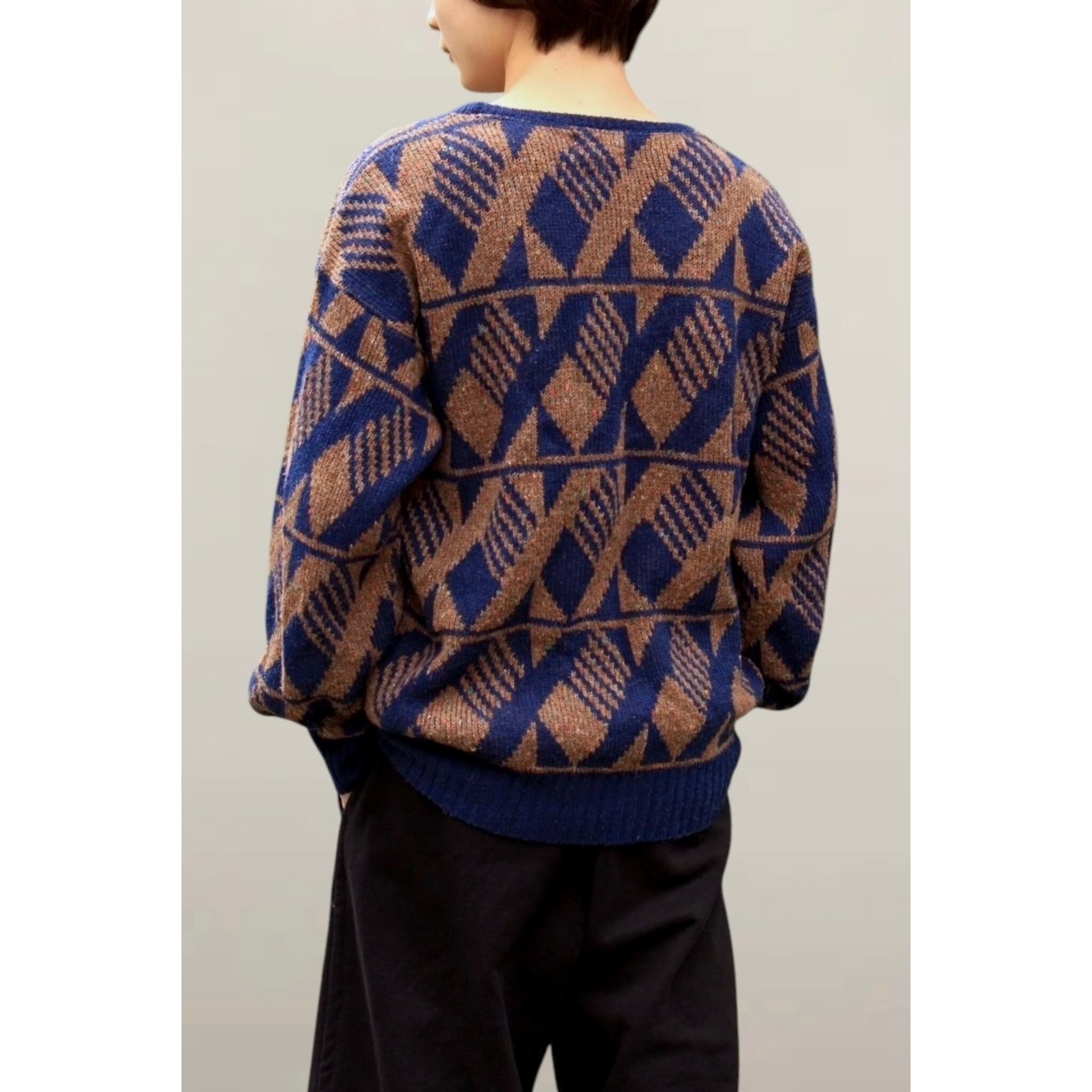 古着らしい幾何学な総柄パターンが魅力な1着。ネイビー、ブラウンのカラーリングも大人っぽく惹かれる柄感ですね〜☺︎