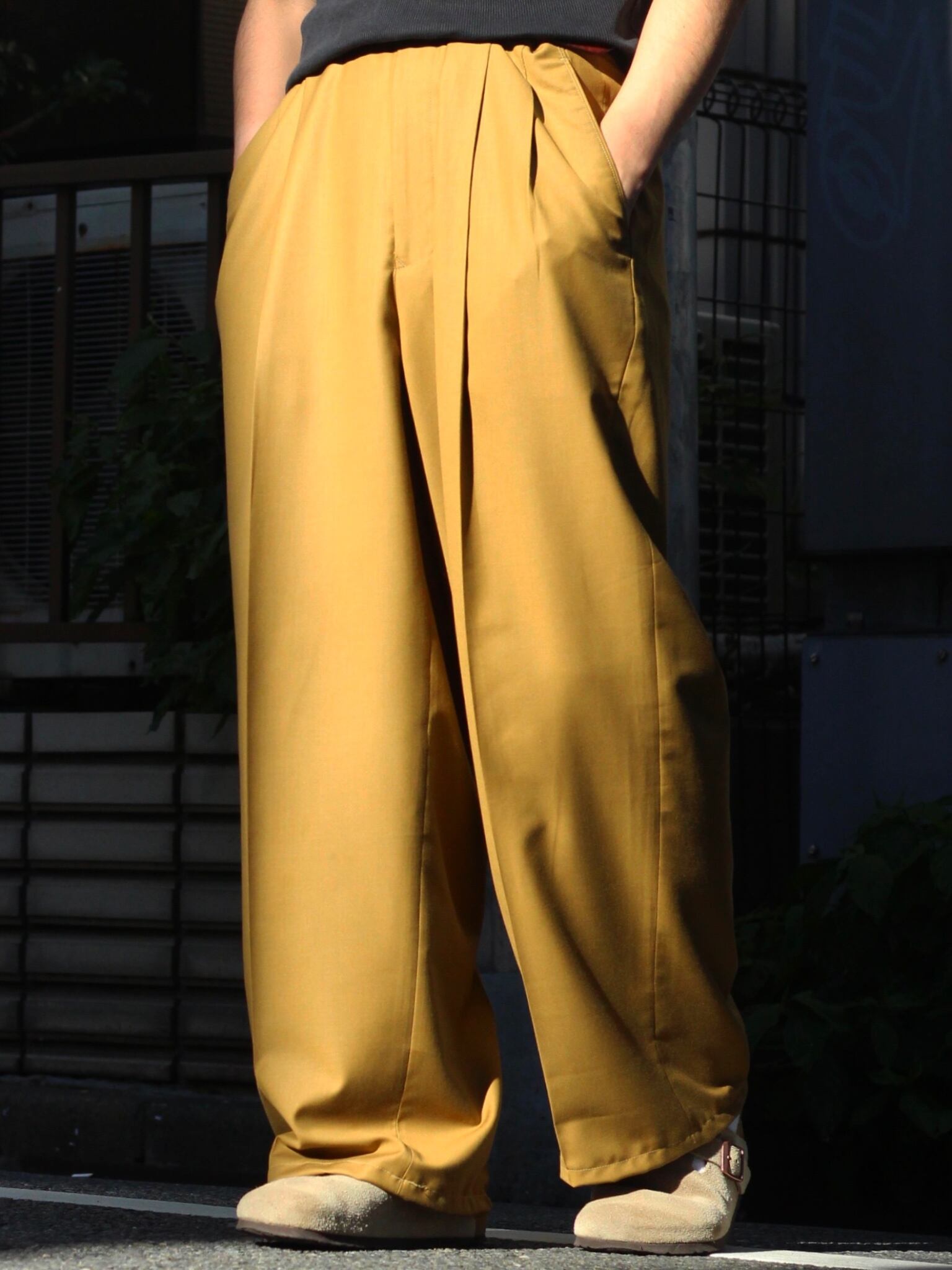 シルエットは腰回りに2タック入るワイドシルエットで、メゾンブランドとも引きを取らないシルエット。